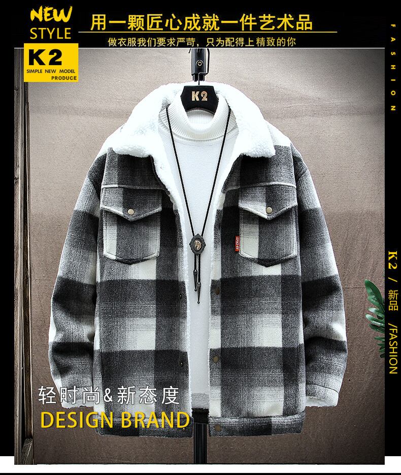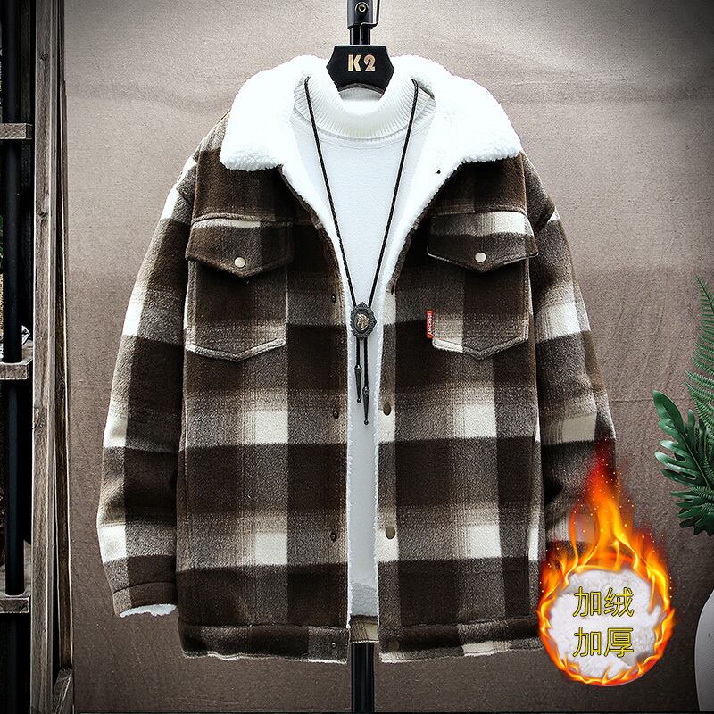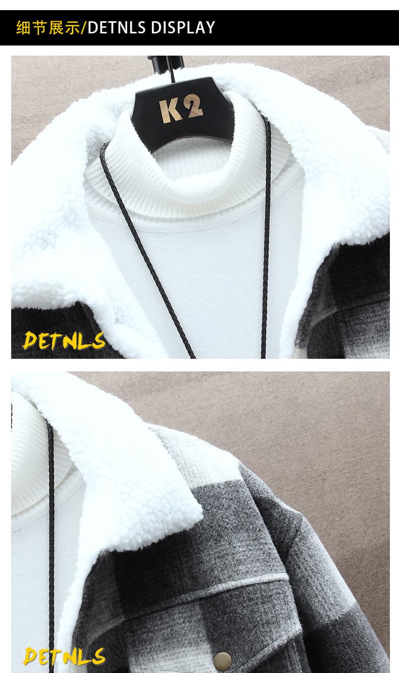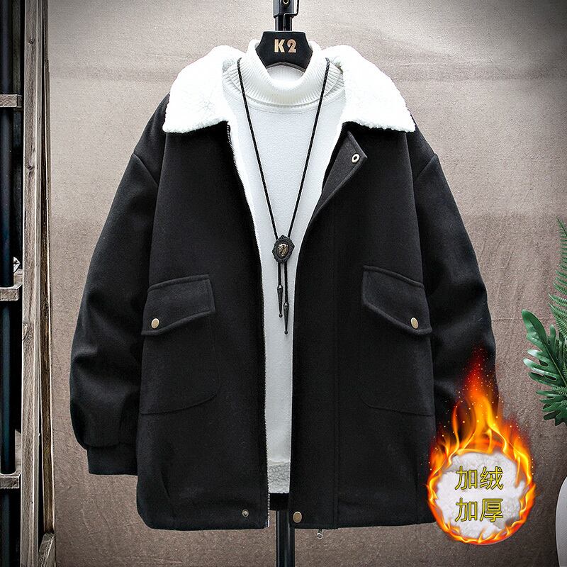Winter lamb wool men's coat woolen spring and autumn plus velvet thickening trend casual woolen jacket men's clothes カジュアル スプリング 春物 オータム 秋物 ウィンター 冬物 doushi75312384932