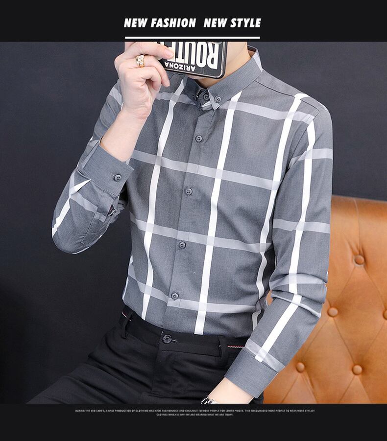 Spring and summer men's long-sleeved shirts version trendy handsome thin shirts casual plaid business shirts ロング カジュアル シャツ スプリング 春物 サマー 夏物 doushi27375039431