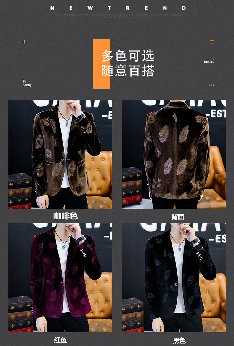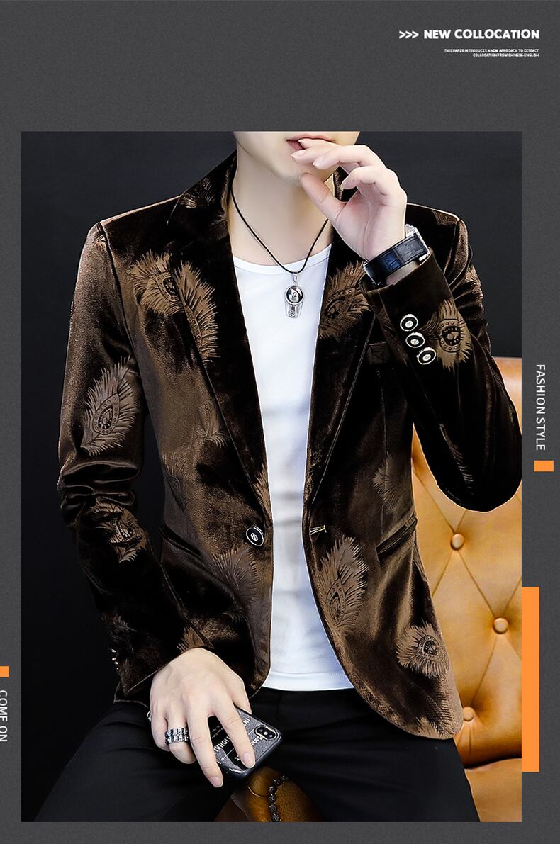 Gold velvet suit men's jacket top youth version of the self-cultivation tide brand casual small suit men's spring and autumn clothes カジュアル スプリング 春物 オータム 秋物 doushi79822895477