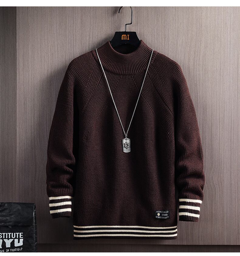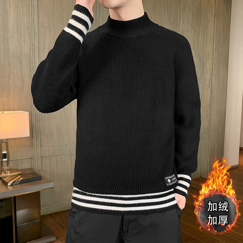 2022 new half turtleneck sweater men's autumn and winter version of the knitted bottoming shirt in the collar plus velvet thick student sweater オータム 秋物 ウィンター 冬物 doushi22282029108