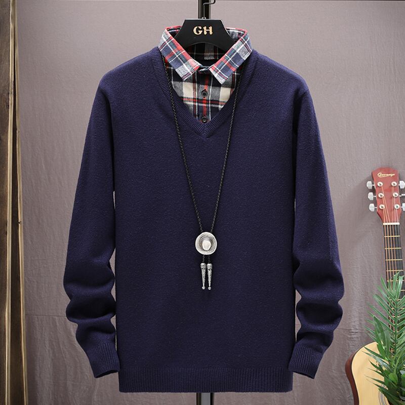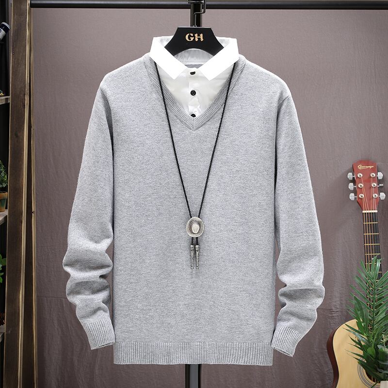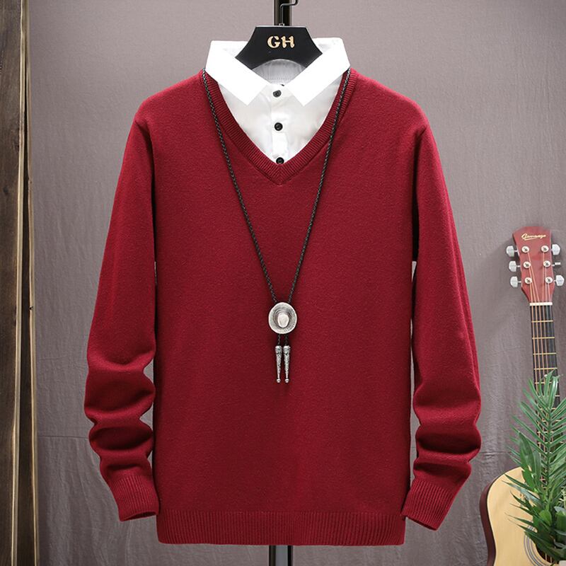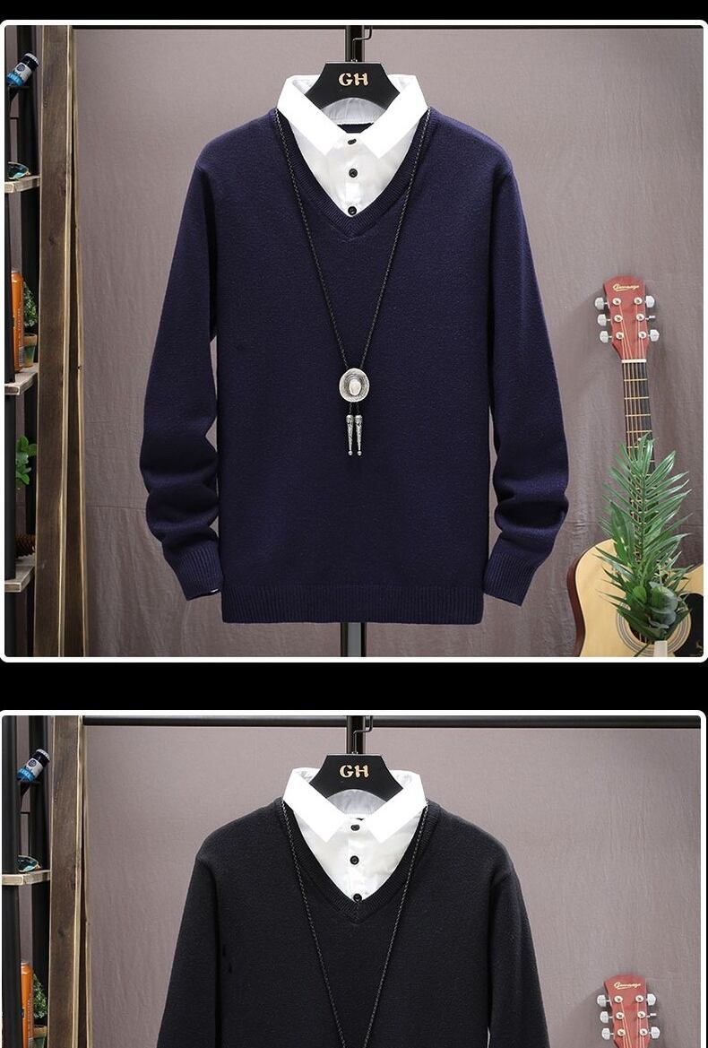 Fake two-piece sweater men's style shirt collar sweater autumn and winter men's shirt collar bottoming shirt two-piece linen sweater オータム 秋物 ウィンター 冬物 doushi80862261546