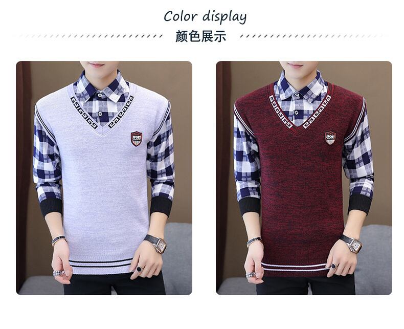 Autumn and winter sweater men's fake two-piece shirt collar trend autumn knitted sweater plus velvet thick top collar collar オータム 秋物 ウィンター 冬物 doushi15009751181