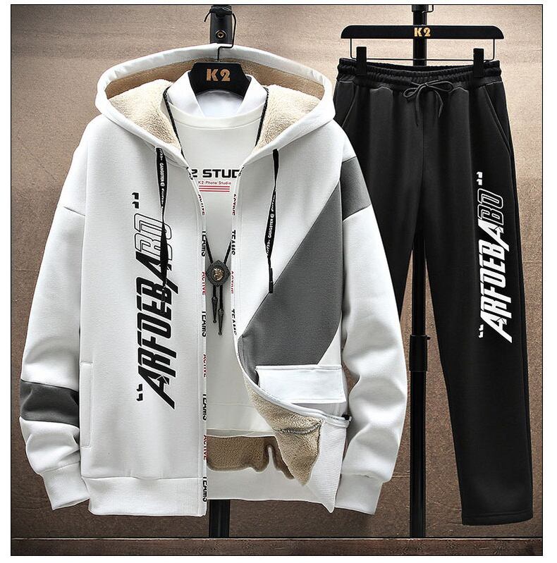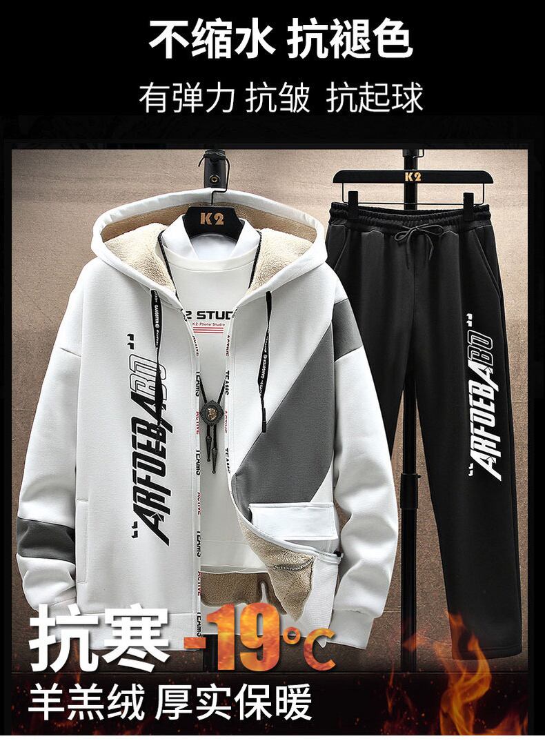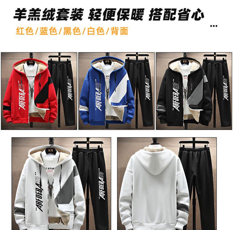 Plus velvet sweater suit men's winter trend high and junior high students thickened lamb velvet hooded youth color matching coat ウィンター 冬物 doushi58759498647