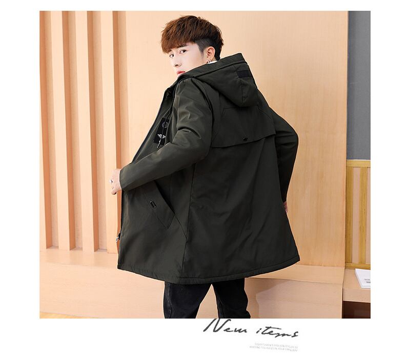 Winter coat men's fleece thickened hooded cotton coat version slim trend windbreaker men's casual warm jacket コットン カジュアル ウィンター 冬物 スリム doushi98502491261