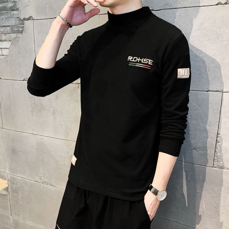 Half turtleneck long-sleeved t-shirt men's autumn and winter 2022 new trendy sweater plus velvet thick inner small shirt bottoming shirt ロング オータム 秋物 ウィンター 冬物 Tシャツ doushi73560163710