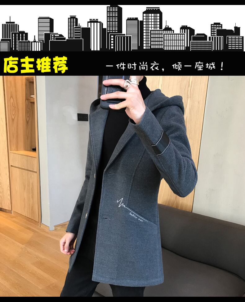 Autumn and winter men's trench coat men's mid-length version trend high-end light luxury coat student wind woolen coat オータム 秋物 ウィンター 冬物 doushi59990030201