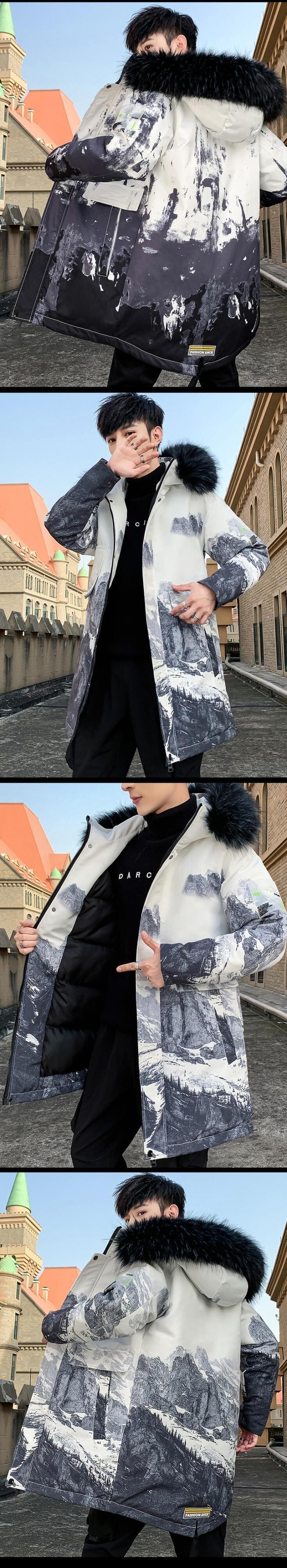 Mid-length down jacket men's thickening 2022 winter snow mountain big fur collar hooded gradient color winter coat tide ウィンター 冬物 doushi20046835705