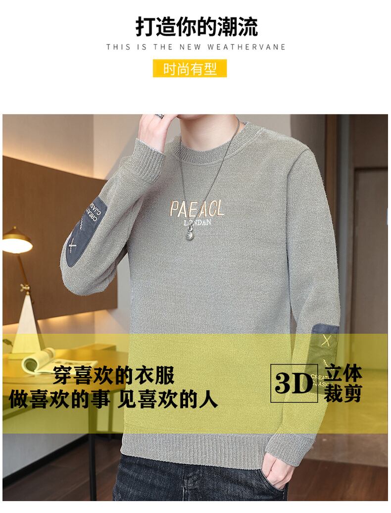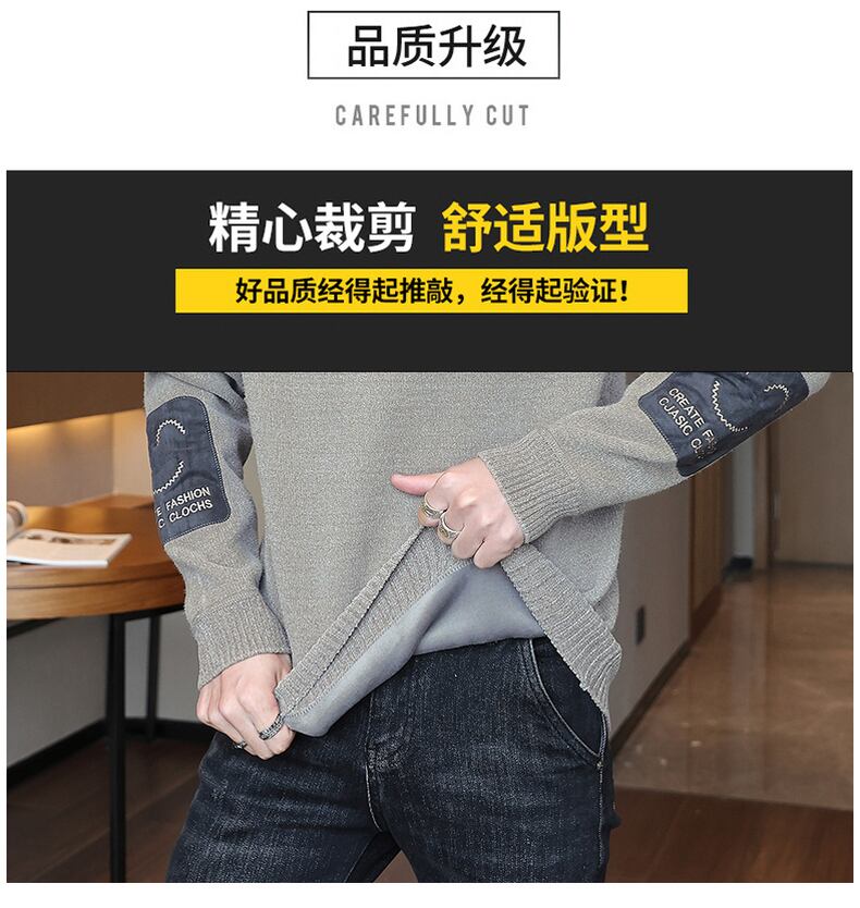 Chenille all-in-one fleece sweater men's autumn and winter thick fleece knitted sweater bottoming shirt trendy top men's clothing オータム 秋物 ウィンター 冬物 doushi23594662988