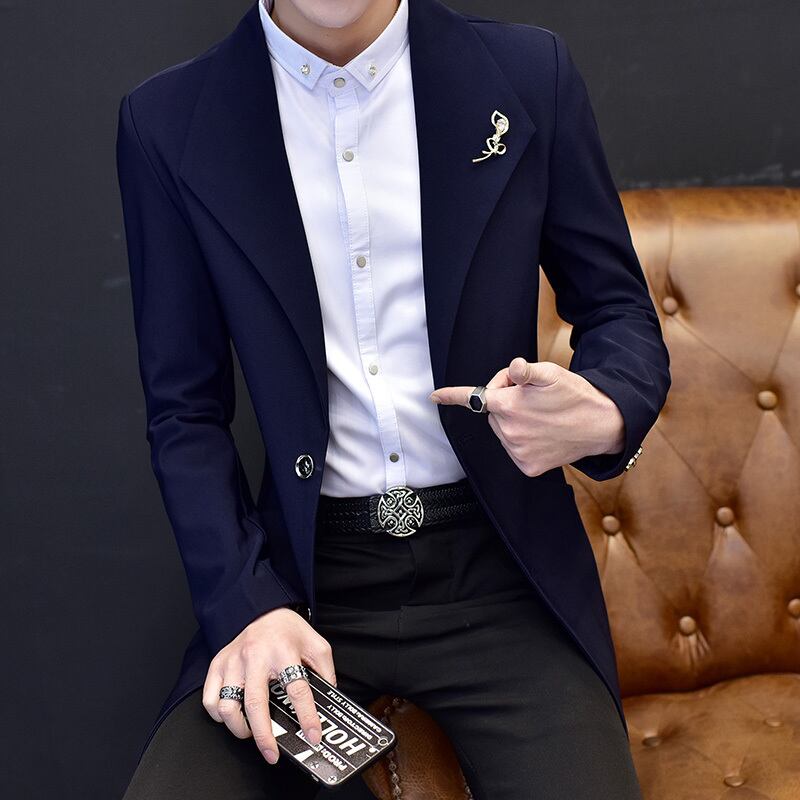 Spring trench coat men's mid-length version slim trend casual small suit jacket men's spring and autumn handsome coat カジュアル スプリング 春物 オータム 秋物 スリム doushi27542227996