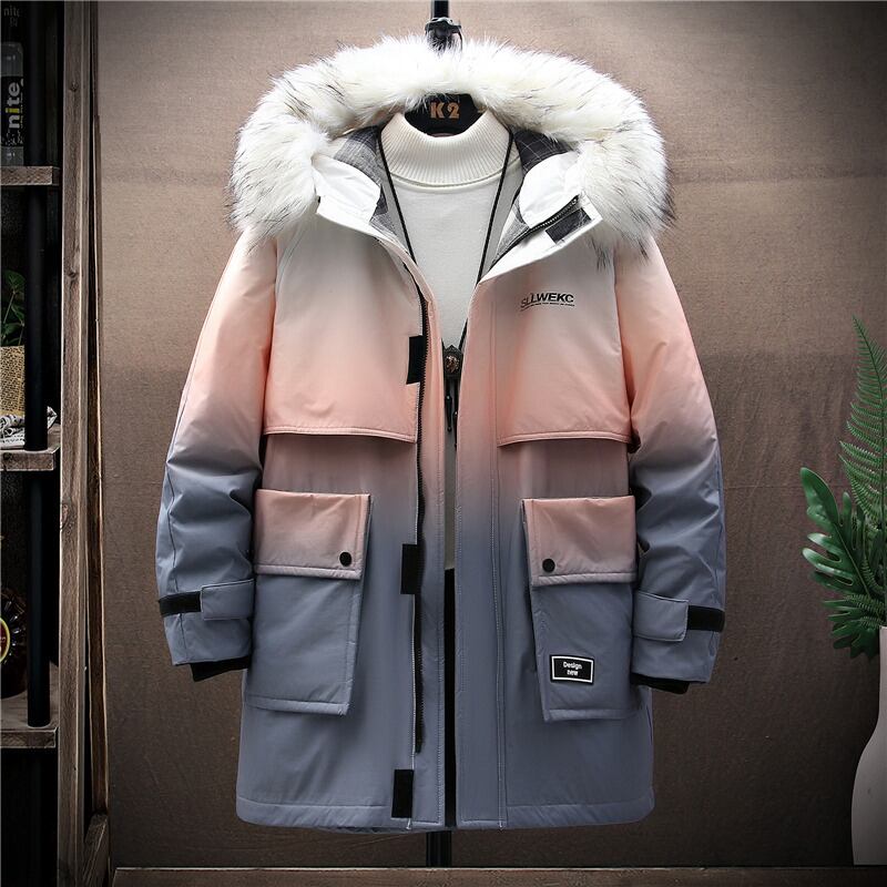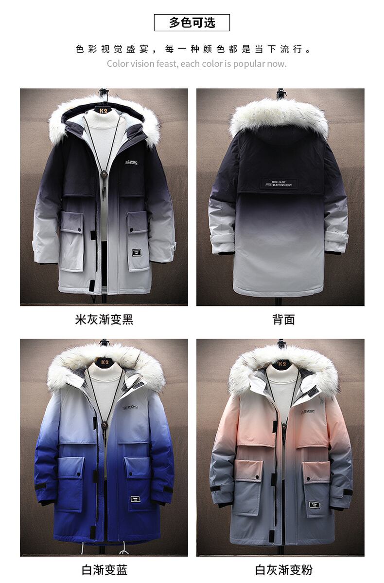 Plus velvet thickened mid-length cotton coat men's version of the tide brand winter gradient hooded parka down coat jacket cotton jacket コットン ウィンター 冬物 doushi53694646606
