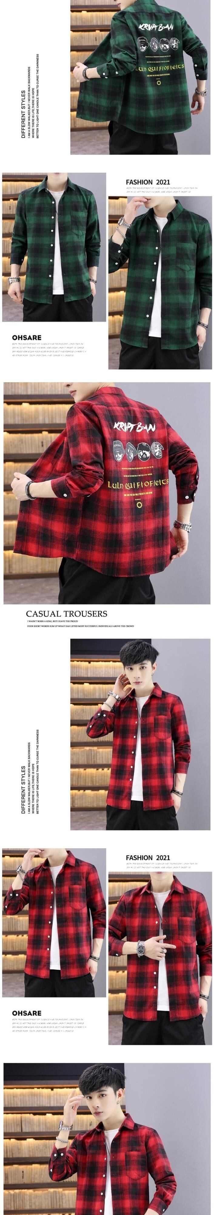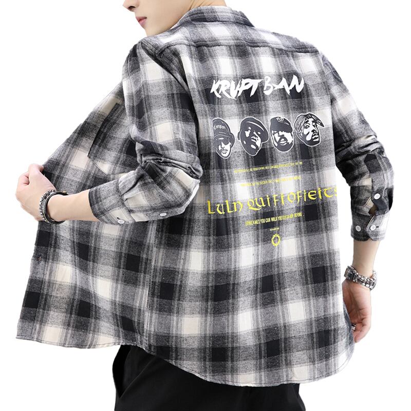Plaid shirt men's long-sleeved autumn thin section trendy ruffian handsome men's shirt jacket casual loose and handsome inch clothes ロング カジュアル オータム 秋物 doushi91076222794
