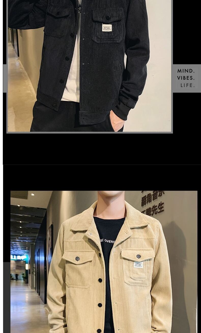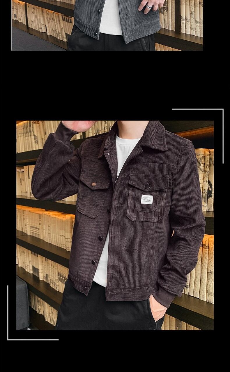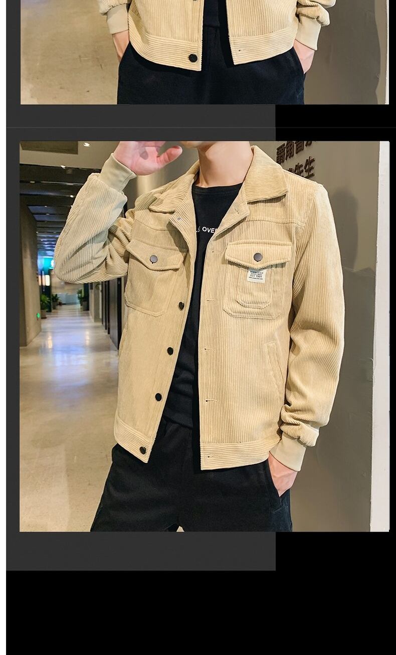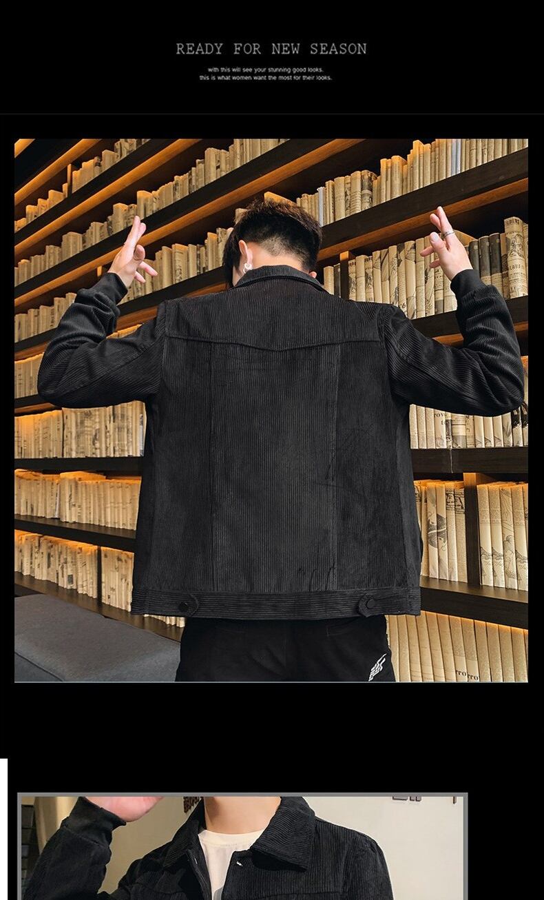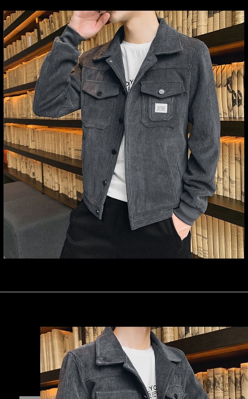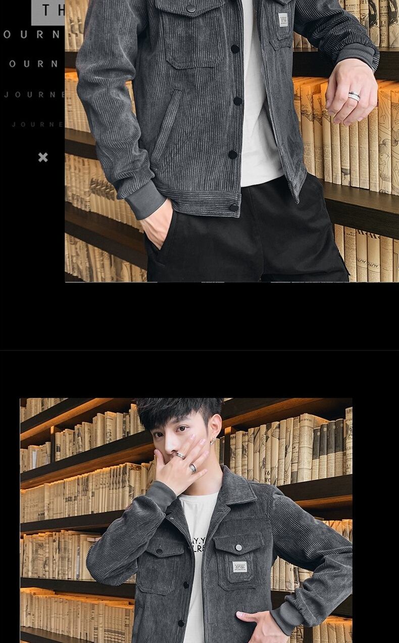 Corduroy jacket men's autumn and winter trend handsome all-match lapel plus velvet thick winter outer casual work jacket カジュアル オータム 秋物 ウィンター 冬物 doushi95901681917
