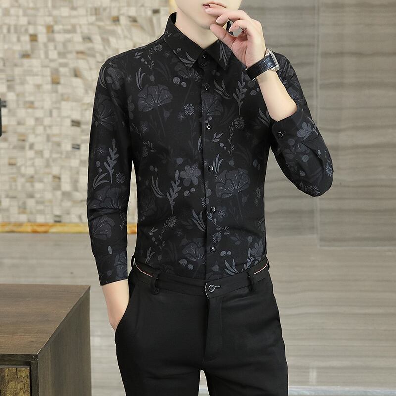 2022 autumn new trendy brand men's printed shirt men's long-sleeved trendy handsome casual shirt personality inch shirt ロング プリント カジュアル オータム 秋物 doushi79507413386