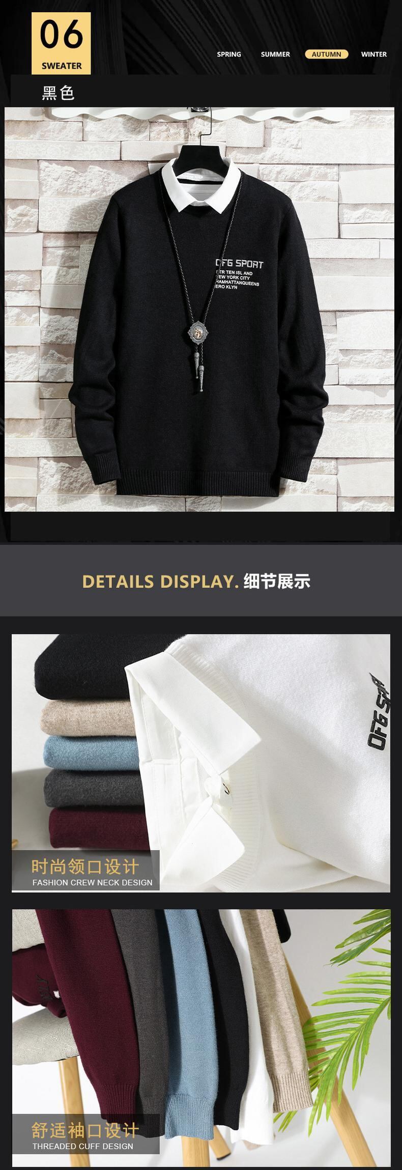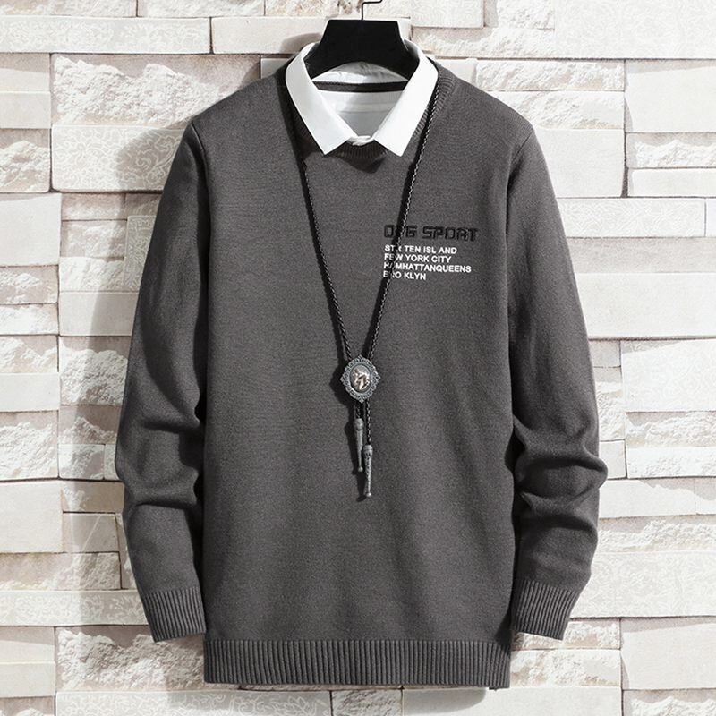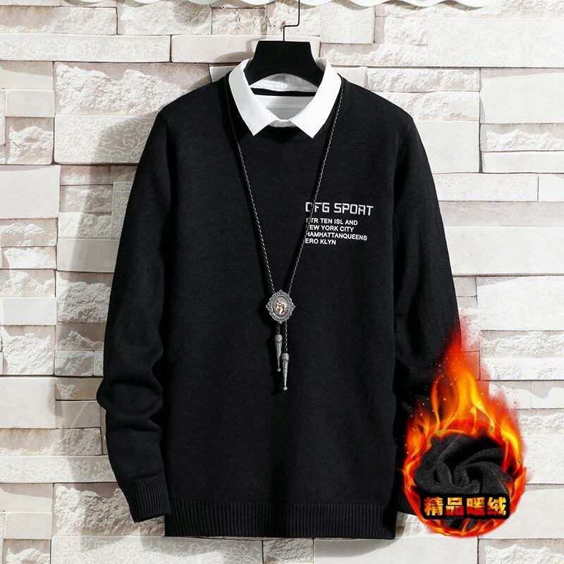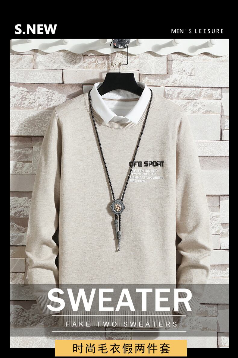 2022 new fake two-piece sweater men's shirt collar knitted sweater thickening trend loose and warm collared bottoming shirt レッド doushi87991421677