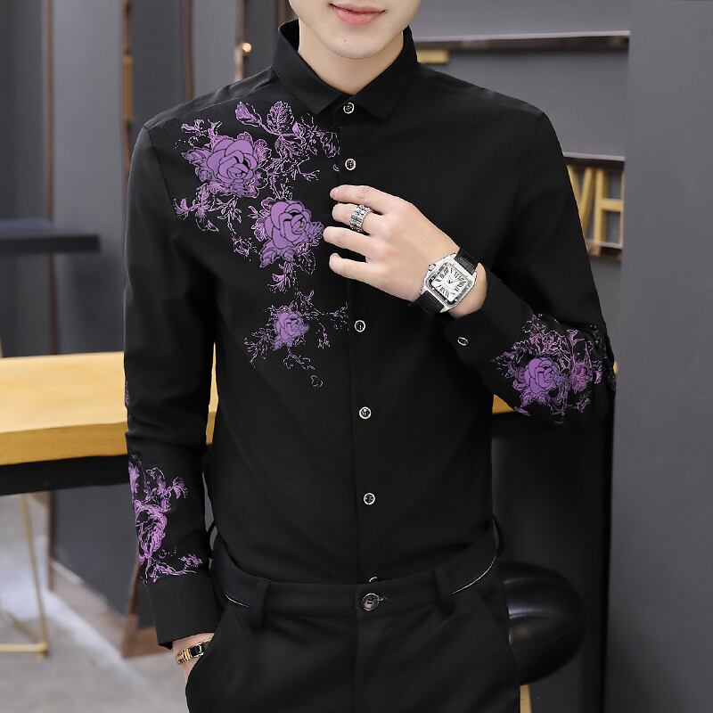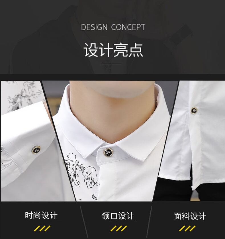 Spring long-sleeved shirts men's version trendy handsome white shirts slim body clothes casual all-match spring inch shirts ロング ホワイト カジュアル シャツ スプリング 春物 スリム doushi89162068051