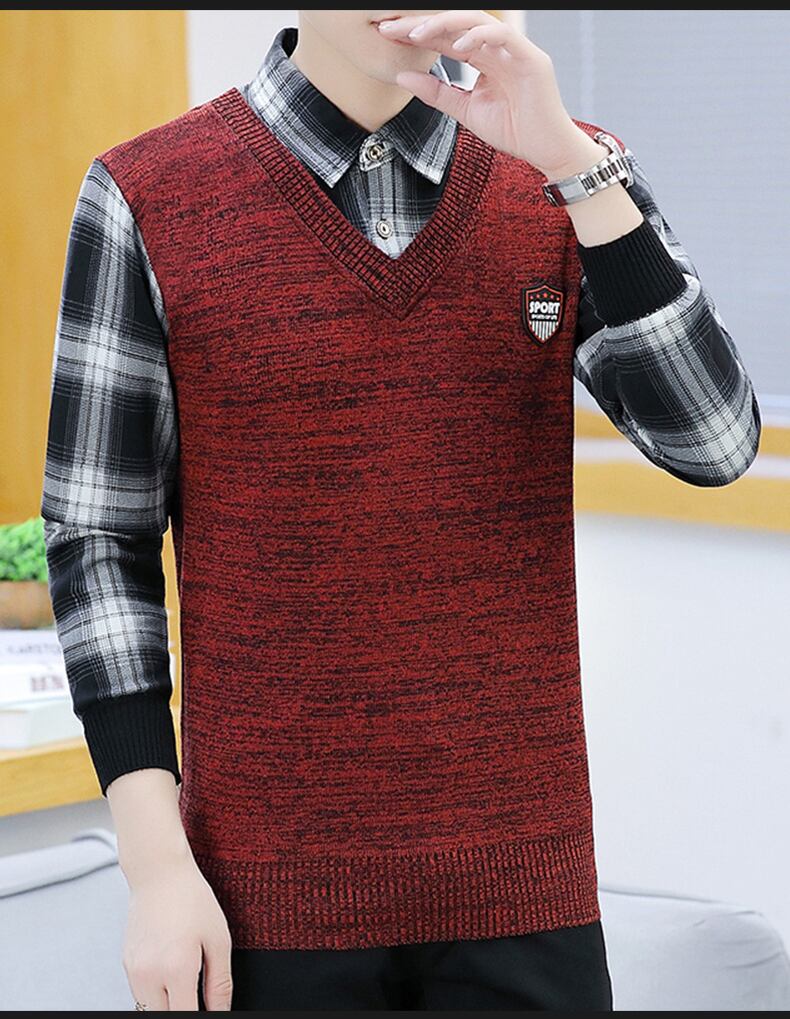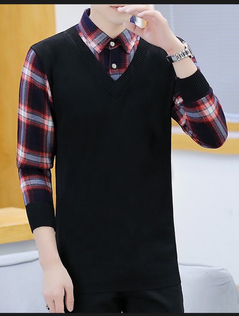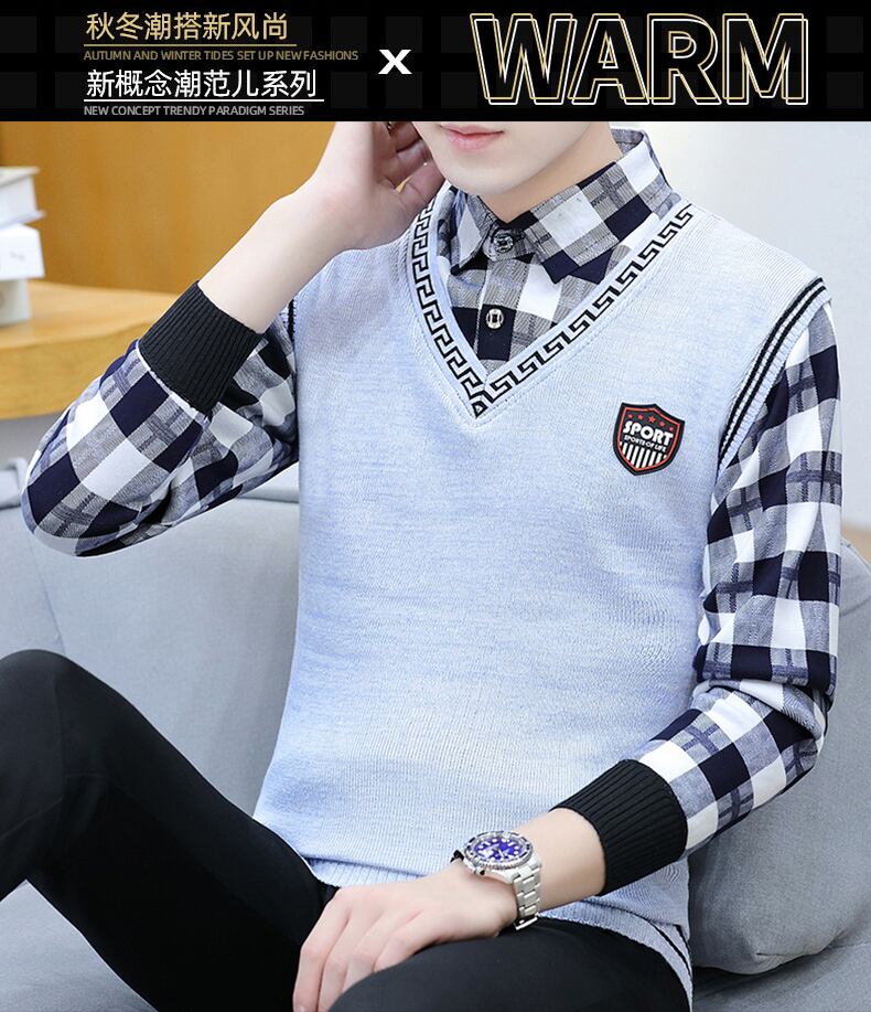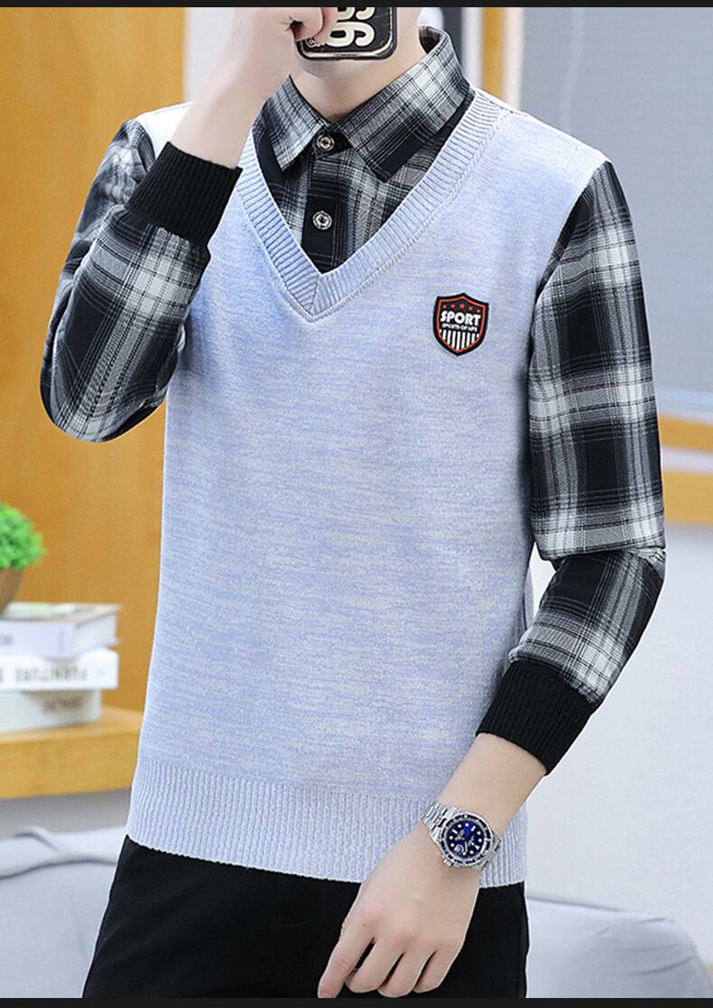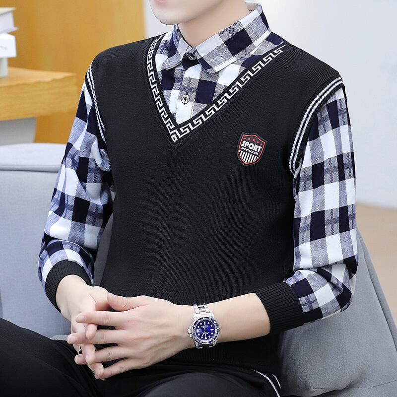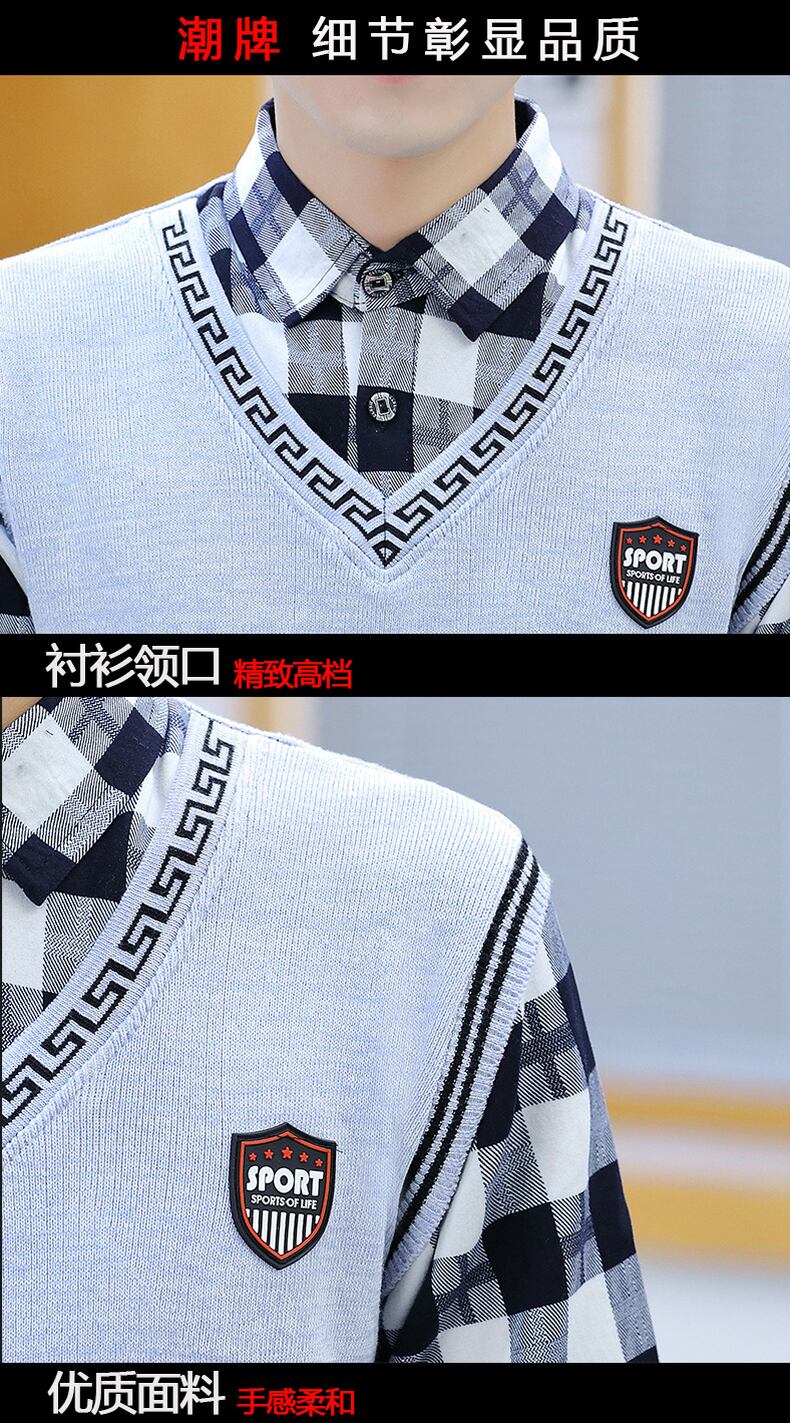 Sweater men's fake two-piece shirt collar knitted sweater spring autumn winter trend thickened shirt collar vest top スプリング 春物 オータム 秋物 ウィンター 冬物 doushi24892392297