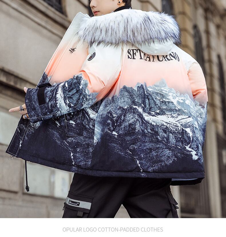 Winter coat men's cotton clothes tide brand gradient cotton jacket 2022 new down jacket couple thickening winter clothes コットン ウィンター 冬物 doushi16127061493