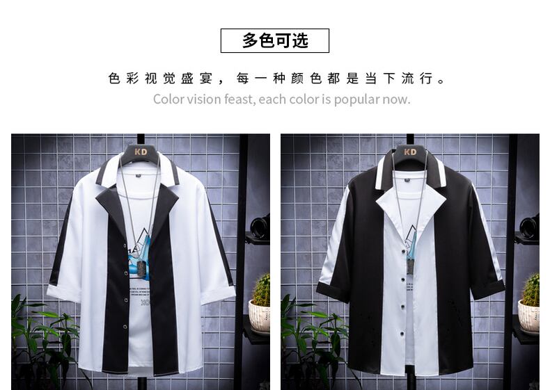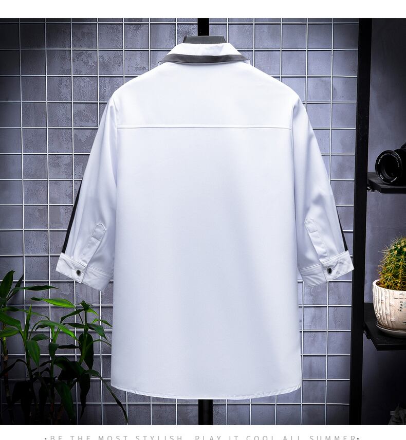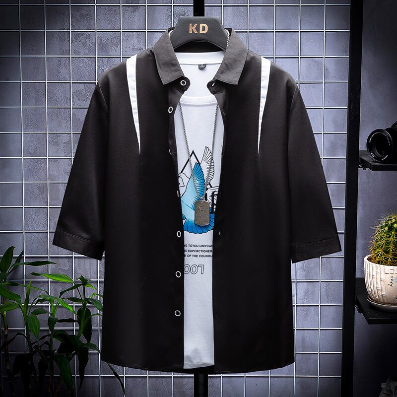 Short-sleeved shirt men's summer new trend loose color matching lapel mid-sleeve jacket men's handsome and versatile thin shirt サマー 夏物 doushi52217561378