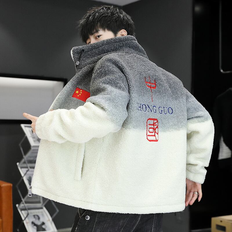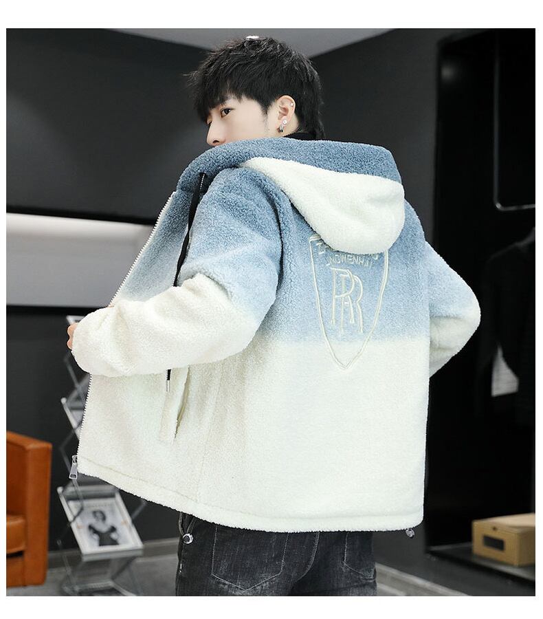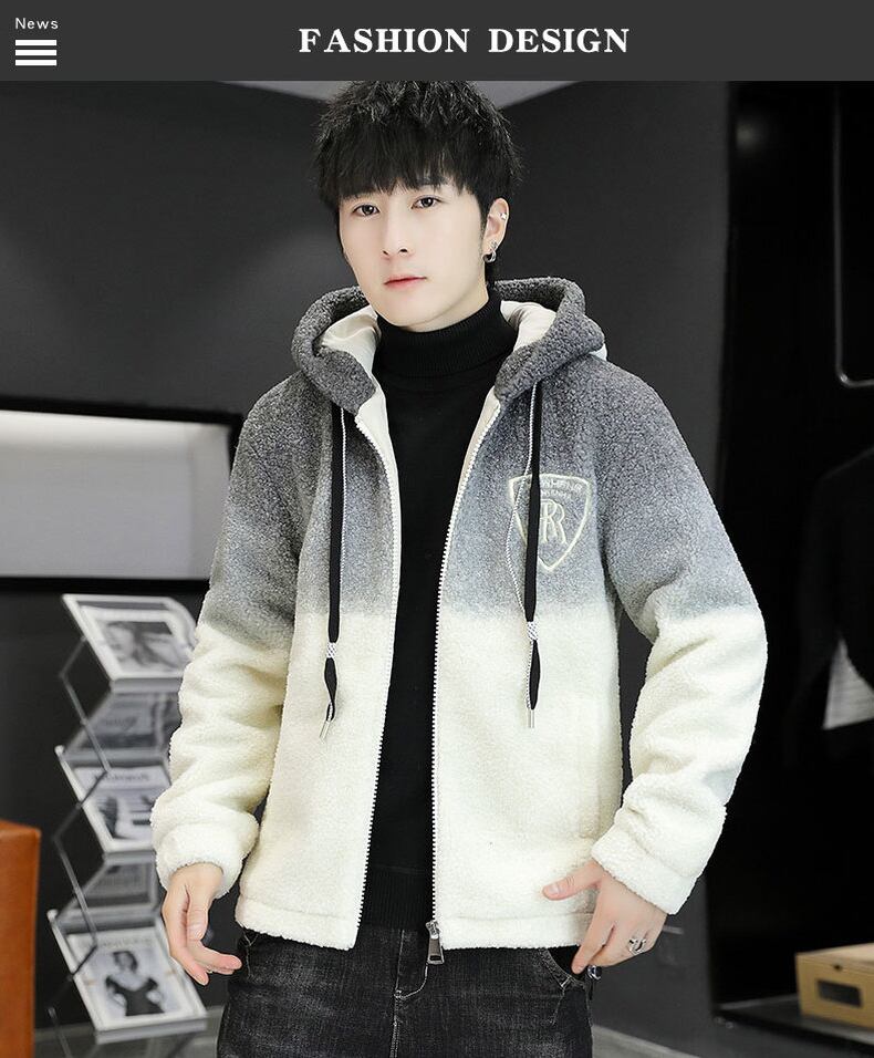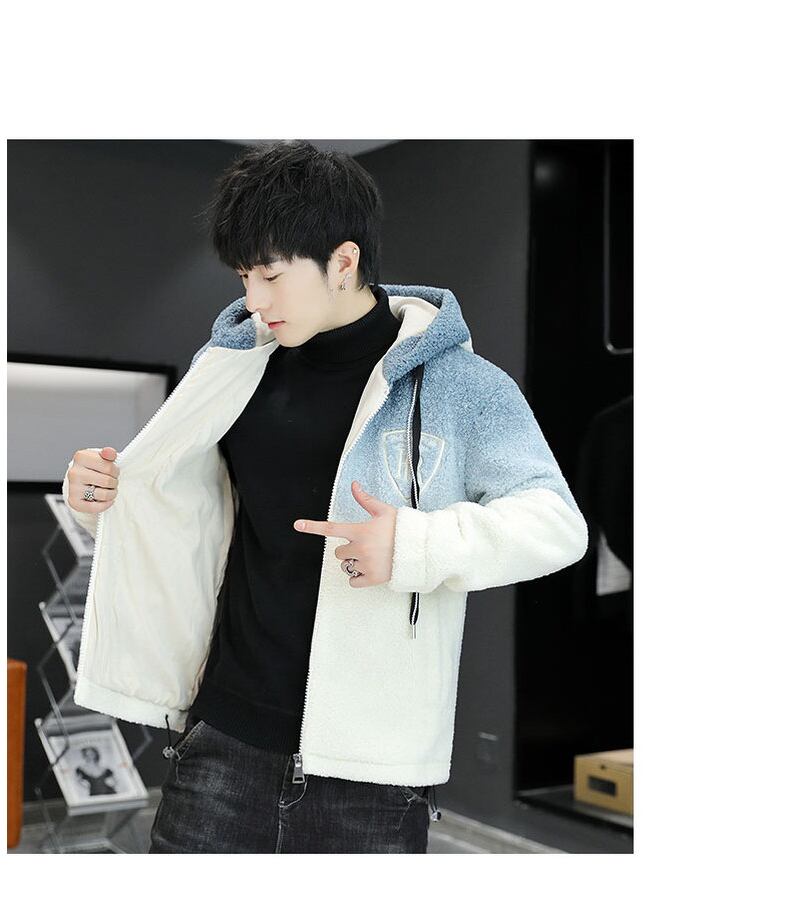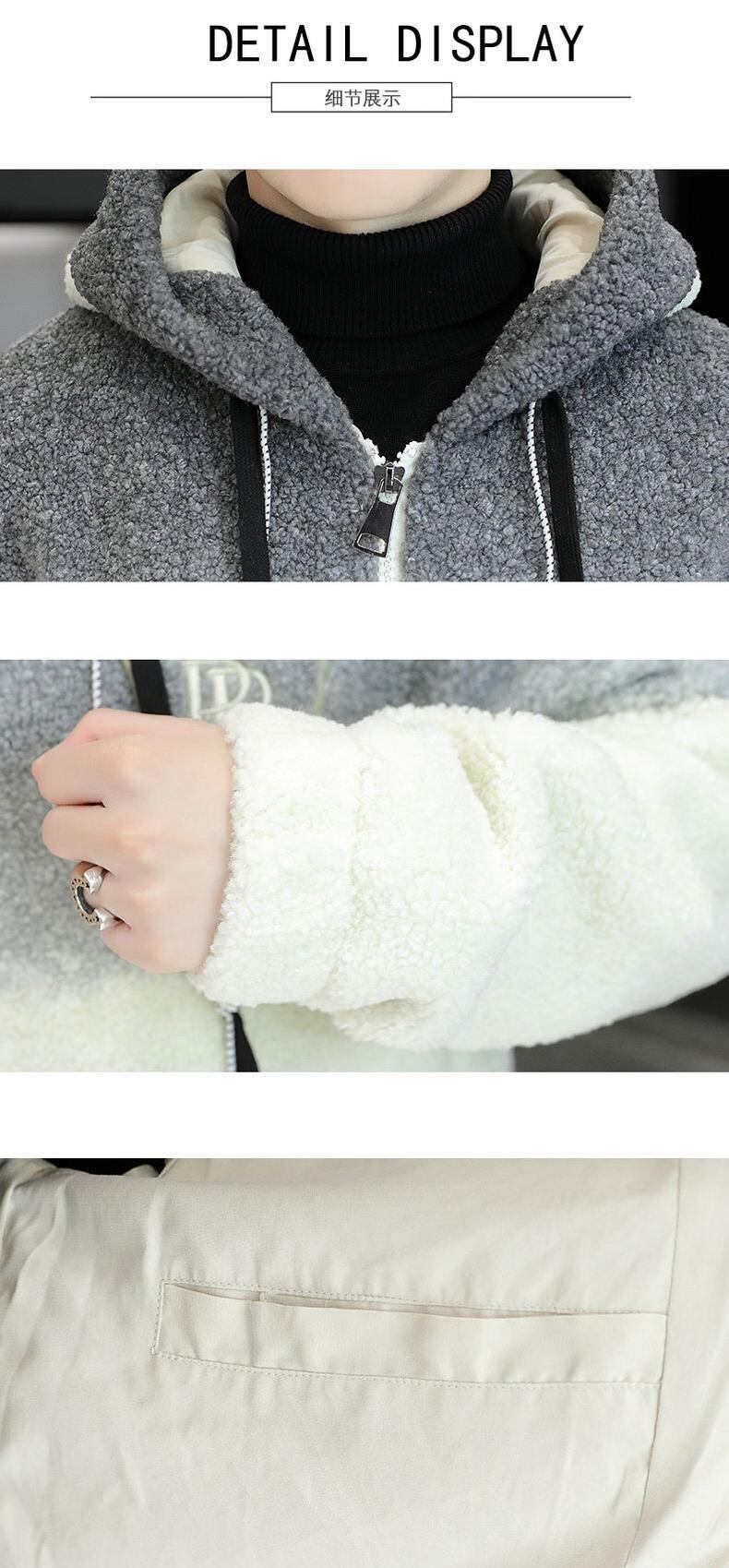 Lamb wool cotton coat men's winter lamb wool coat men's version of the tide plus velvet thick cotton jacket loose hooded cotton coat コットン ウィンター 冬物 doushi76793871120