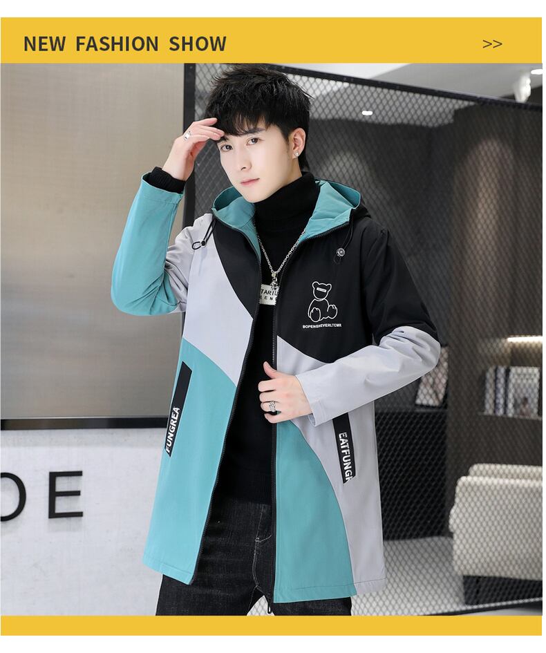 Men's jacket spring and autumn trend 2022 autumn and winter teenagers plus velvet thick mid-length windbreaker jacket men's autumn スプリング 春物 オータム 秋物 ウィンター 冬物 doushi1909819857