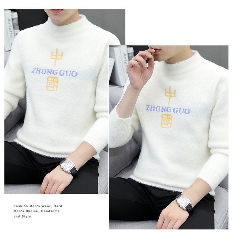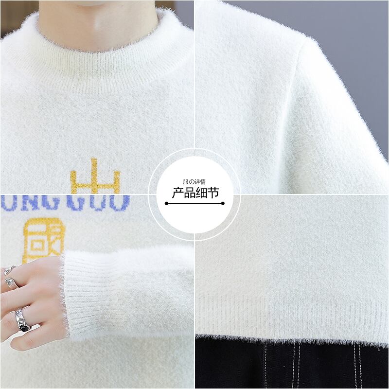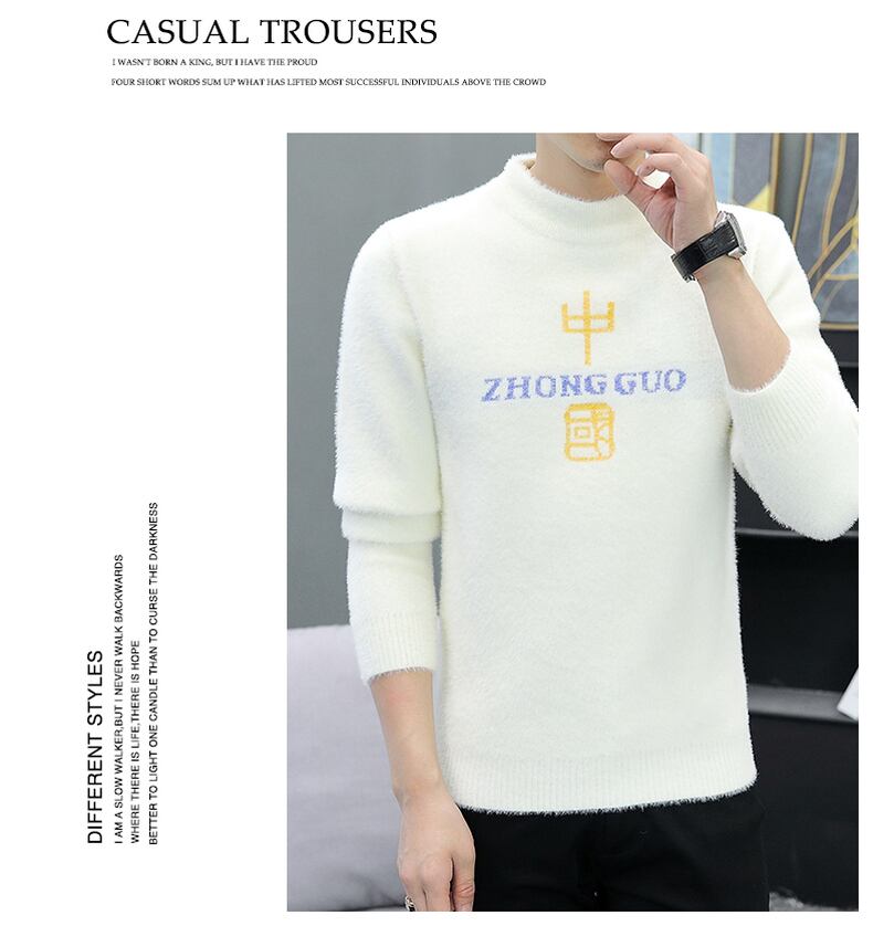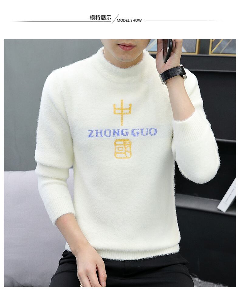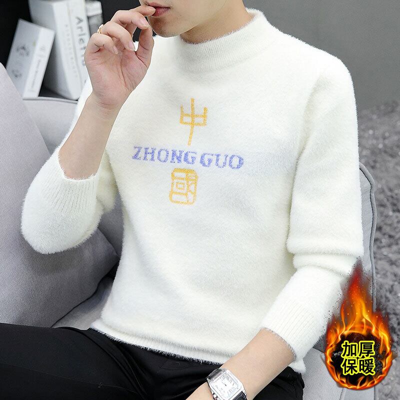 Men's mink fleece half turtleneck sweater spring and autumn 2022 new trend winter thickening bottoming knitted sweater スプリング 春物 オータム 秋物 ウィンター 冬物 doushi12764924088