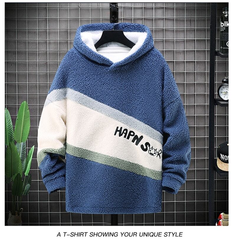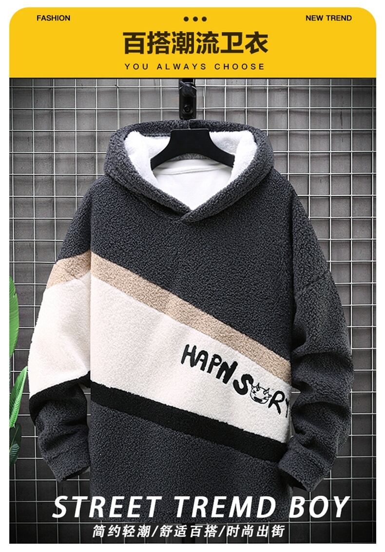 2022 new autumn and winter grain velvet sweater men's hooded plus velvet thickened lamb velvet men's trend warm jacket オータム 秋物 ウィンター 冬物 doushi26643757003