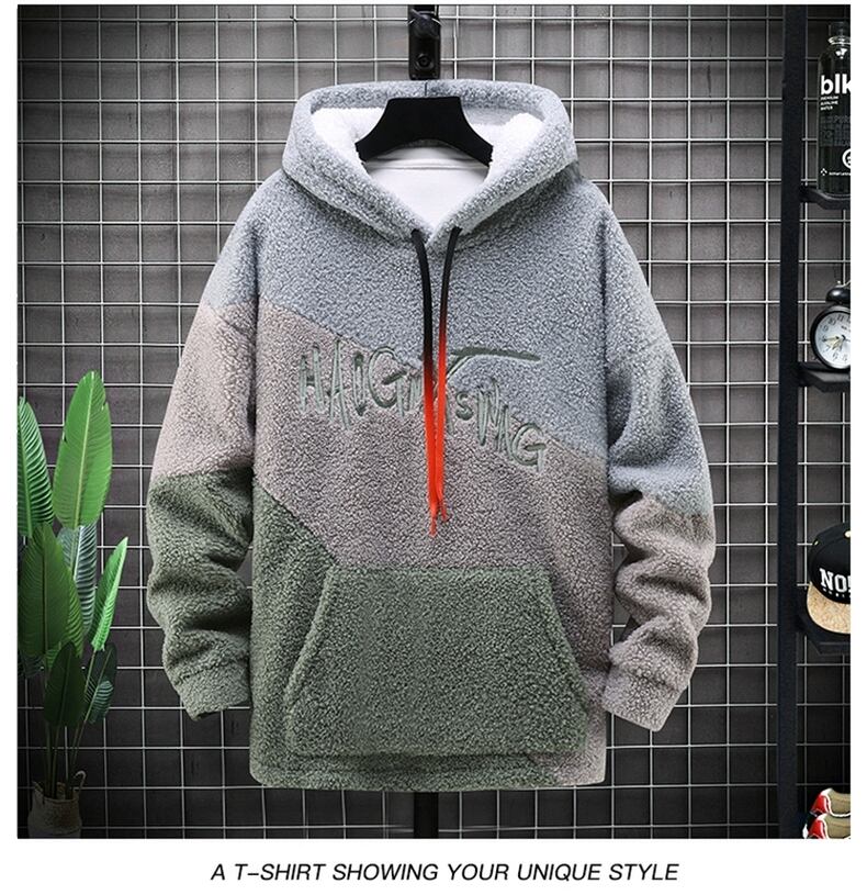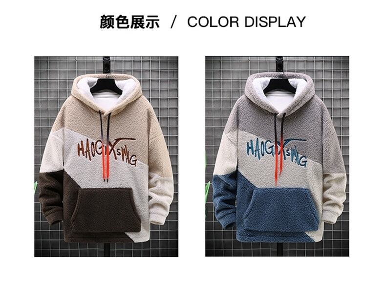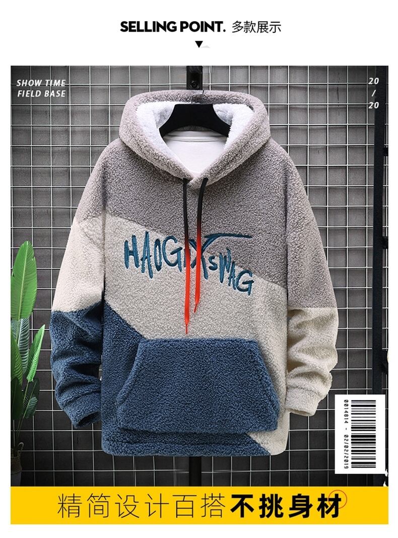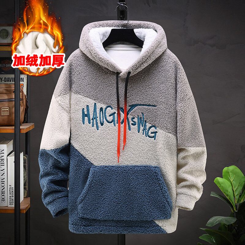 Autumn and winter fleece thickened sweater male teenager handsome men's 2022 new lamb plush hooded jacket オータム 秋物 ウィンター 冬物 doushi76290301323