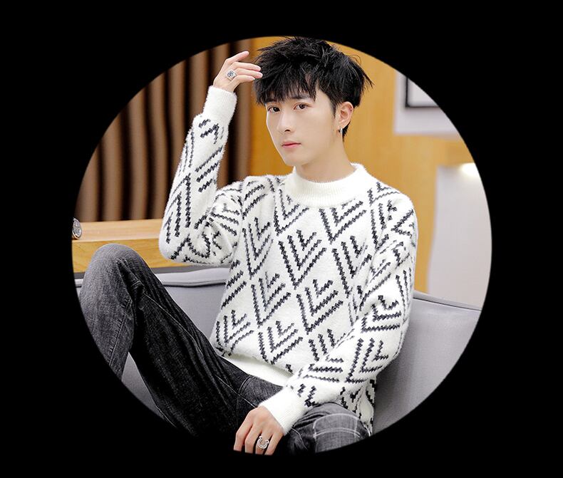 Autumn and winter half turtleneck sweater male youth version of the trend of self-cultivation plus velvet imitation mink velvet thickened warm sweater オータム 秋物 ウィンター 冬物 doushi99314333414