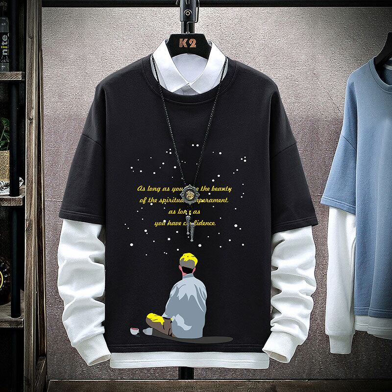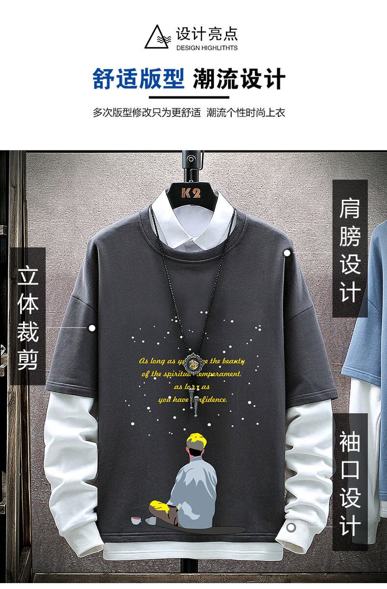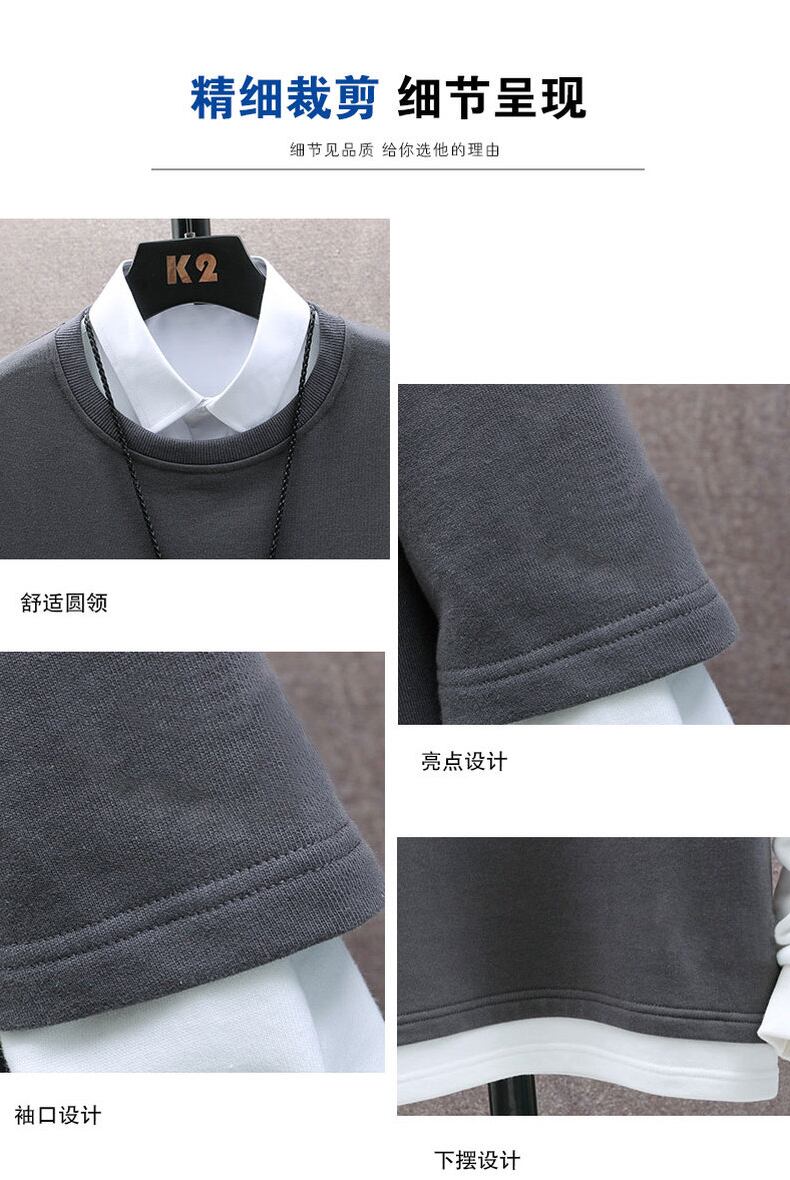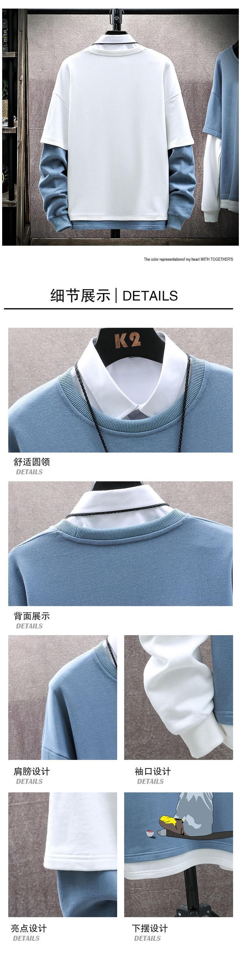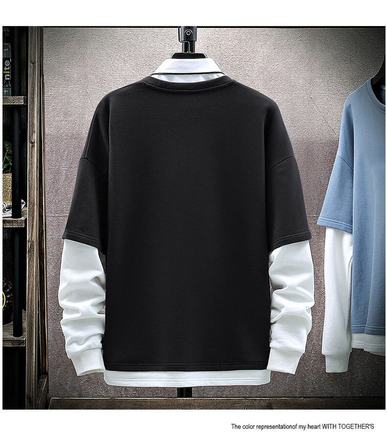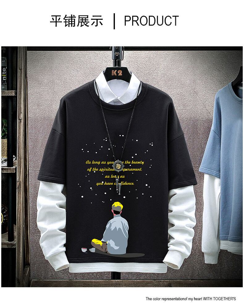 Fake two-piece sweater men's trendy autumn junior high students autumn wear youth round neck top trend capless clothes オータム 秋物 Oネック doushi61209988891