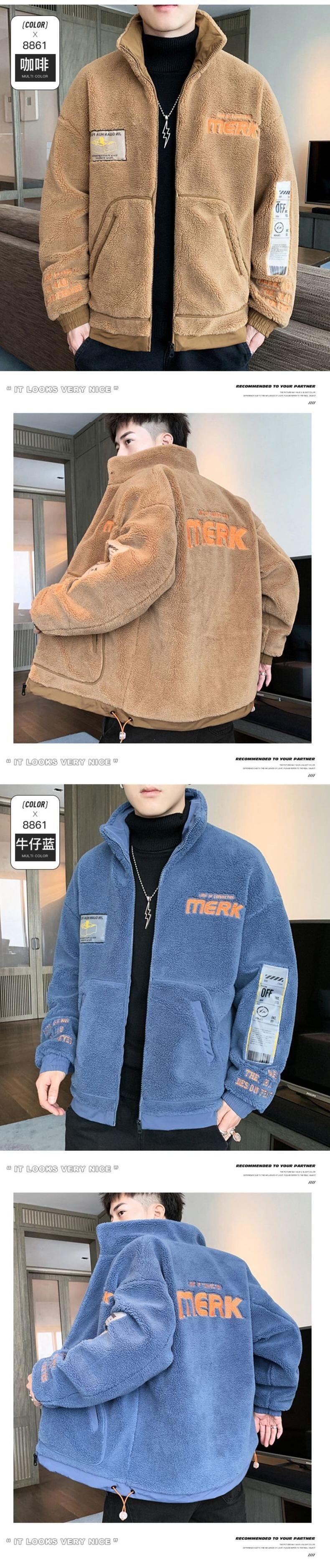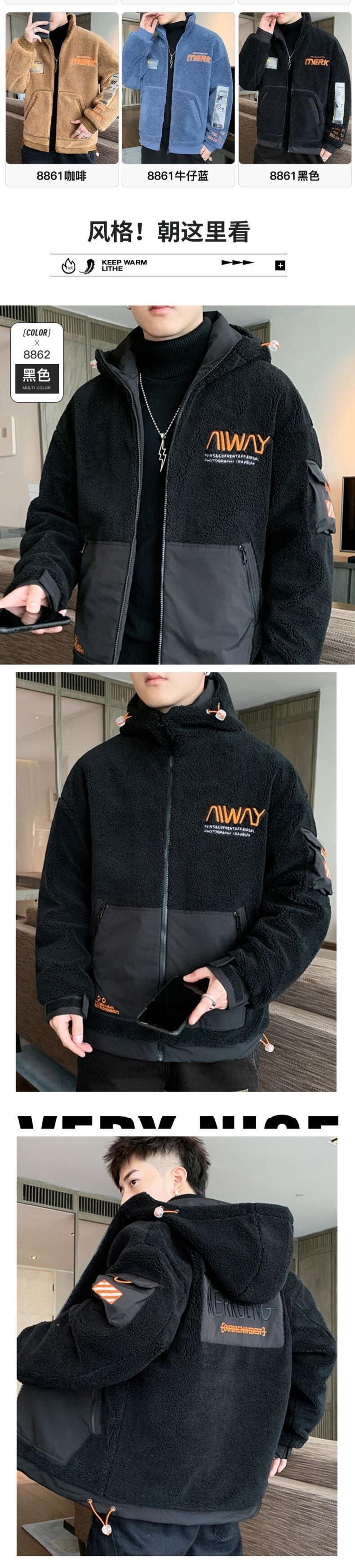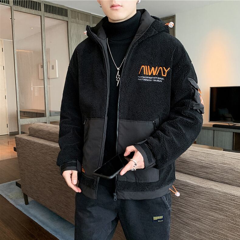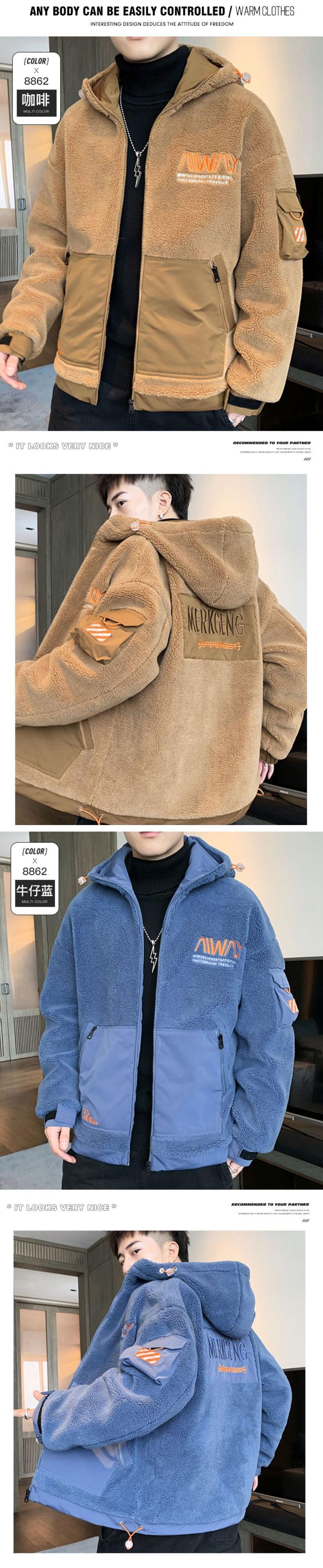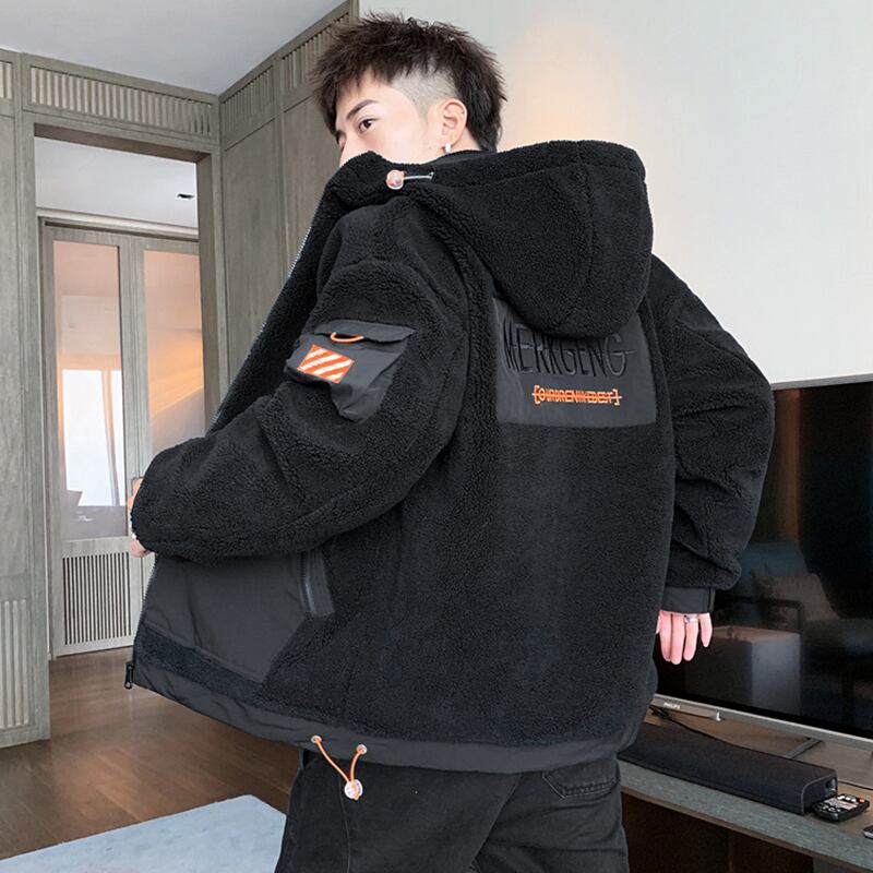 Lamb wool coat men's winter clothing 2022 new loose winter cotton-padded jacket tide brand cotton plus velvet thick cotton men's コットン ウィンター 冬物 doushi18503920837