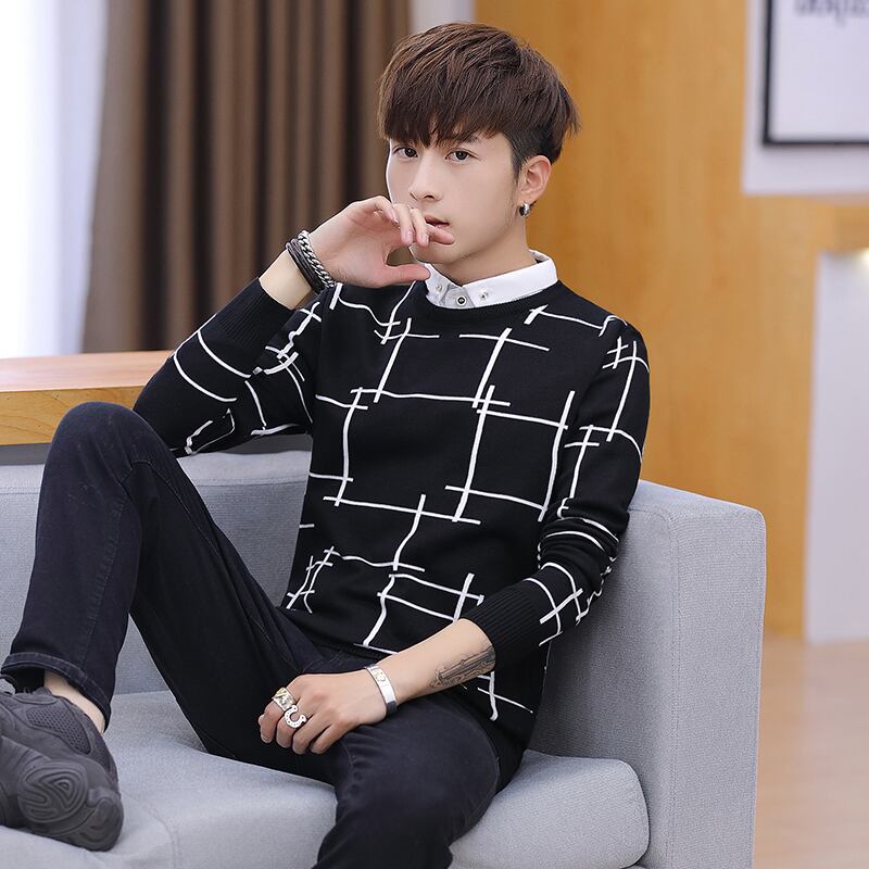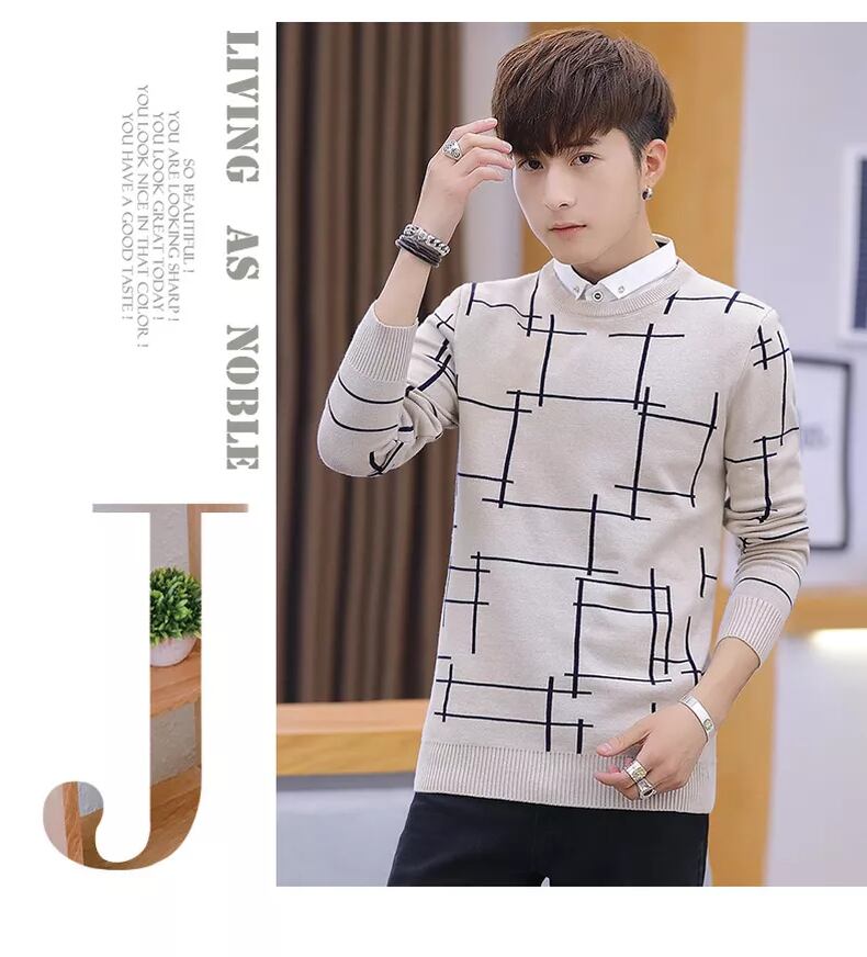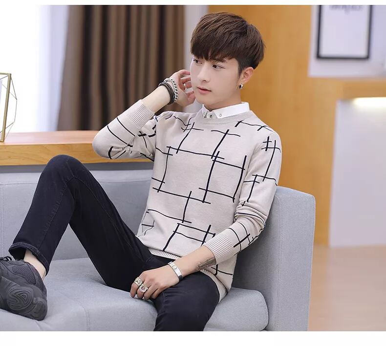 Autumn and winter holiday two-piece sweater men's shirt collar knitted sweater fake collar long-sleeved shirt collar collar top trendy ロング オータム 秋物 ウィンター 冬物 doushi20256932136