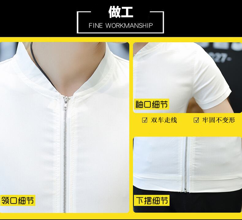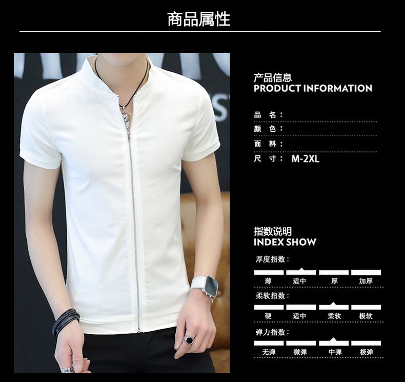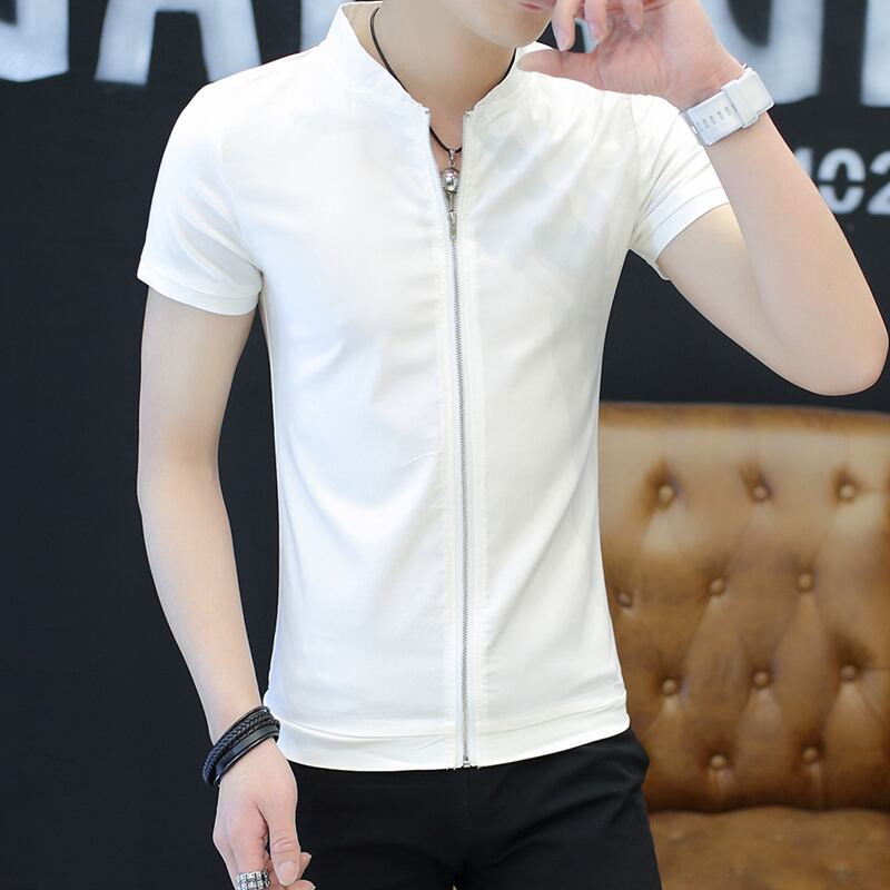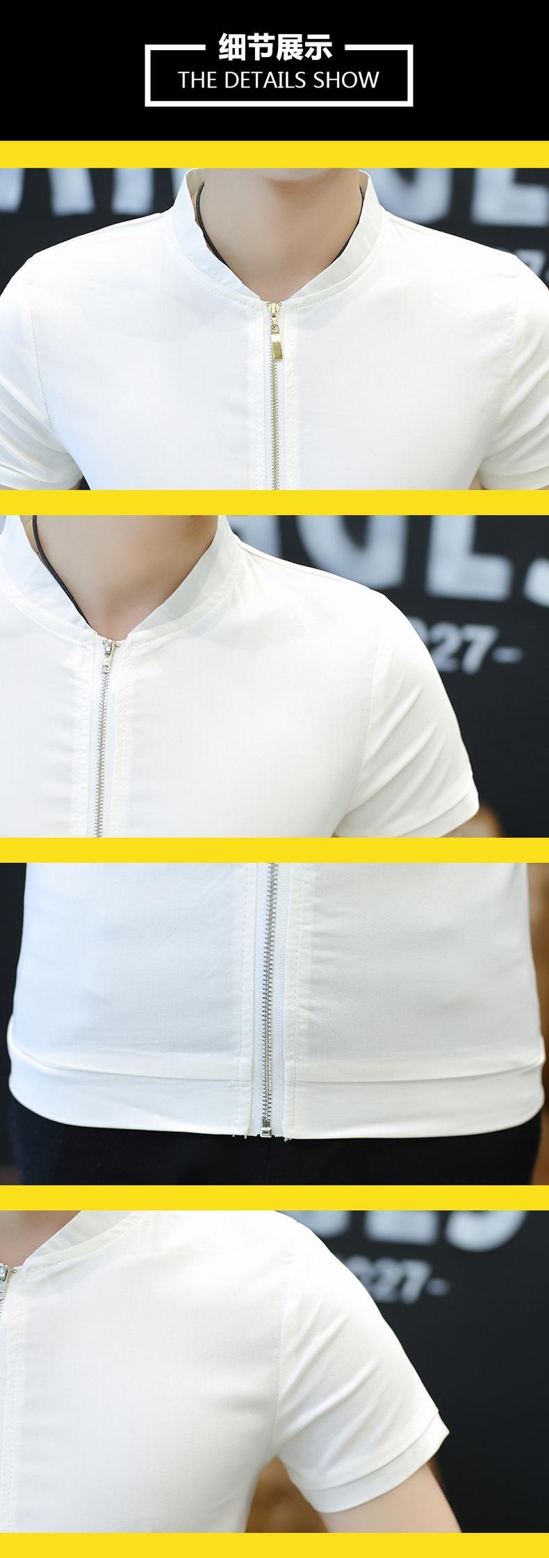 Men's short-sleeved stand-up collar shirt youth slim cardigan POLO small shirt handsome zipper shirt student inch shirt カーディガン スリム doushi22734821718