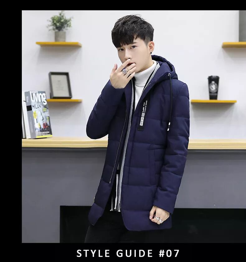 Winter new cotton-padded men's slim mid-length jacket youth thickening winter clothing trend down padded jacket men コットン ウィンター 冬物 スリム doushi64920780753