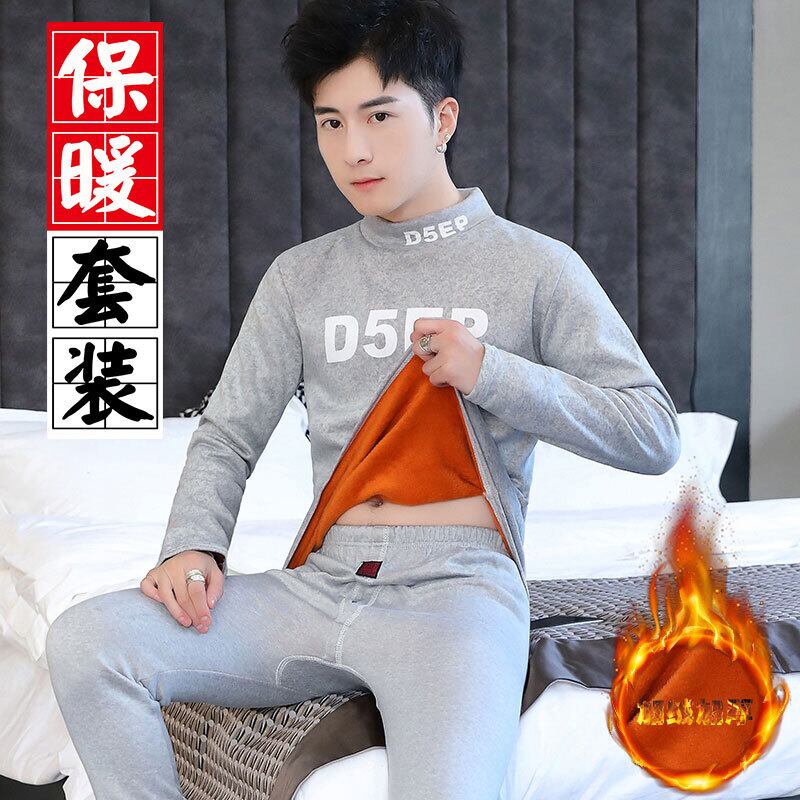 Autumn and winter new men's velvet thickening suit teen students with velvet autumn clothes and long pants thermal underwear bottoming shirt tide ロング オータム 秋物 ウィンター 冬物 doushi99358267846