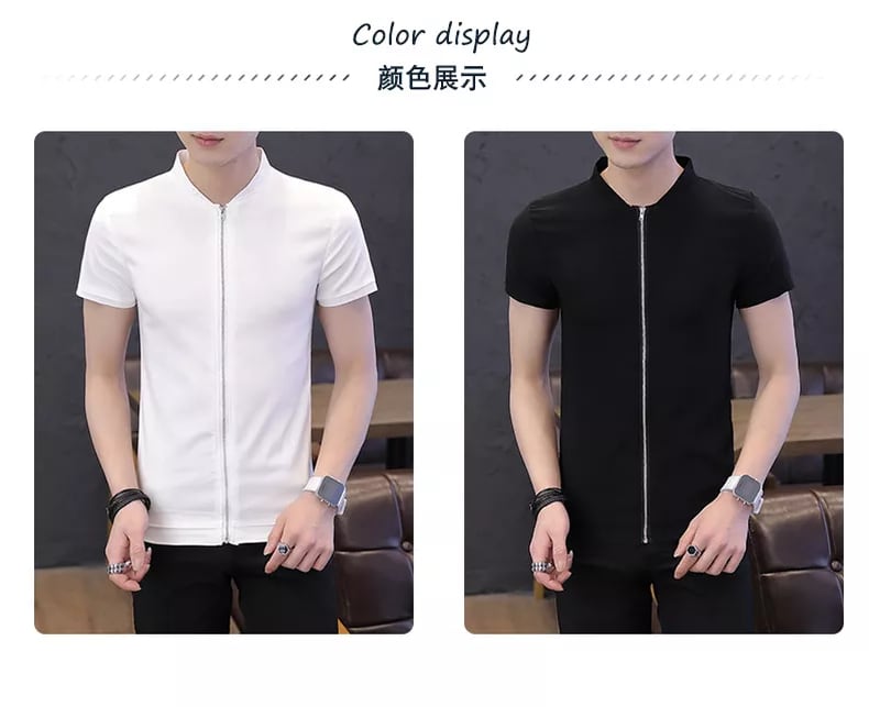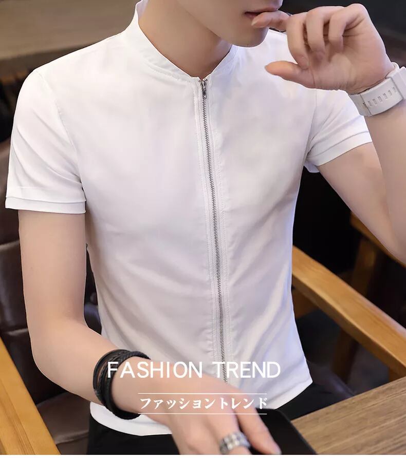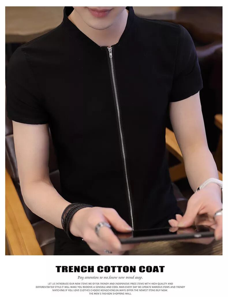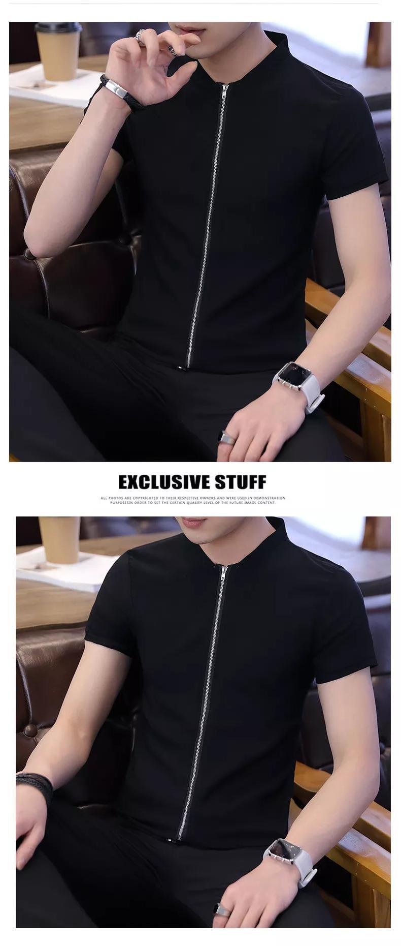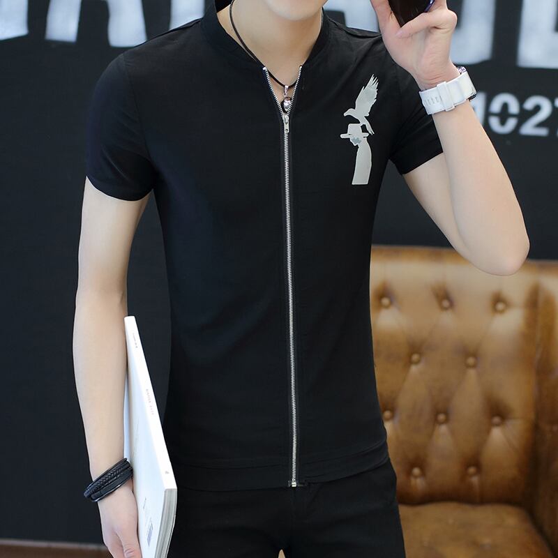 Cardigan zipper short-sleeved t-shirt men's summer new printed shirt youth self-cultivation stand-up collar half-sleeve trend men's clothing プリント カーディガン サマー 夏物 Tシャツ doushi6995705070