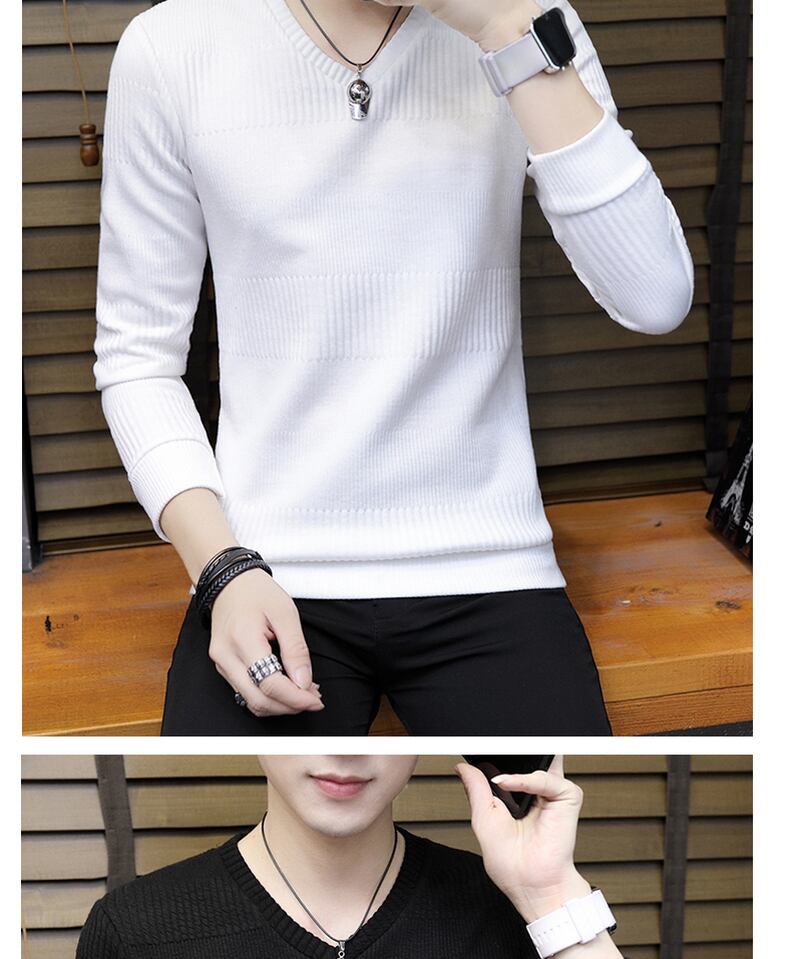 2022 autumn and winter men's long-sleeved t-shirt V-neck knitted sweater linen thickened bottoming shirt clothes trend plus velvet white ロング ホワイト オータム 秋物 ウィンター 冬物 Vネック Tシャツ doushi73863145854