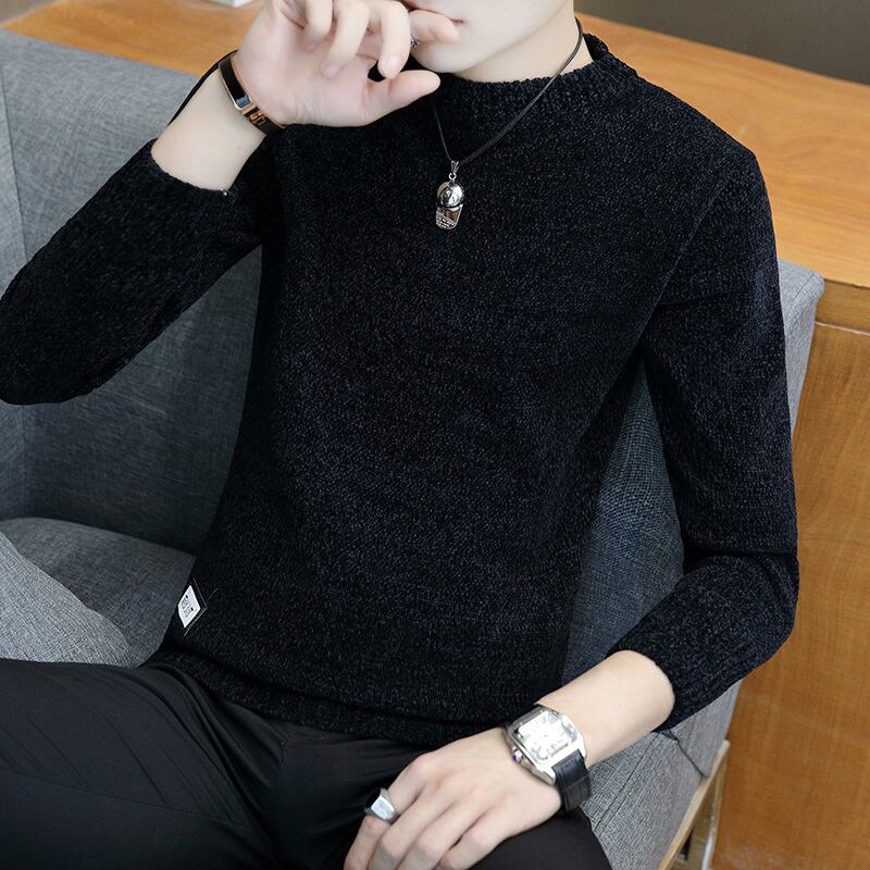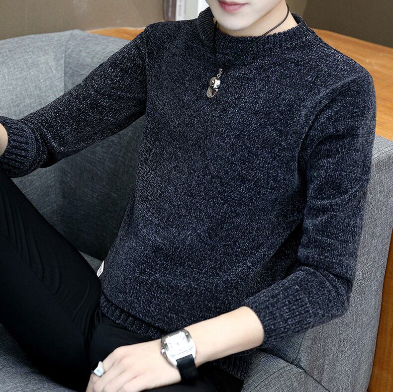 Autumn and winter new men's chenille plus velvet thick sweater version solid color youth round neck knitted bottoming shirt tide オータム 秋物 ウィンター 冬物 Oネック ソリッドカラー doushi497787802