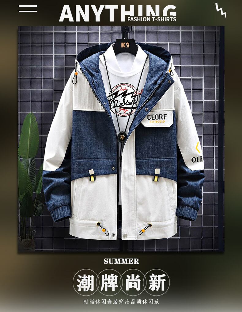 Jacket men's 2022 autumn and winter new version trendy handsome youth loose tooling top thick denim jacket オータム 秋物 ウィンター 冬物 doushi87511690598