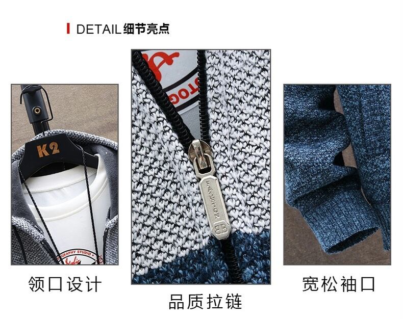 Autumn and winter knitted sweater men's cardigan jacket plus velvet thickened hooded color-blocking sweater men's fashion clothes outer jacket カーディガン オータム 秋物 ウィンター 冬物 doushi45788164700