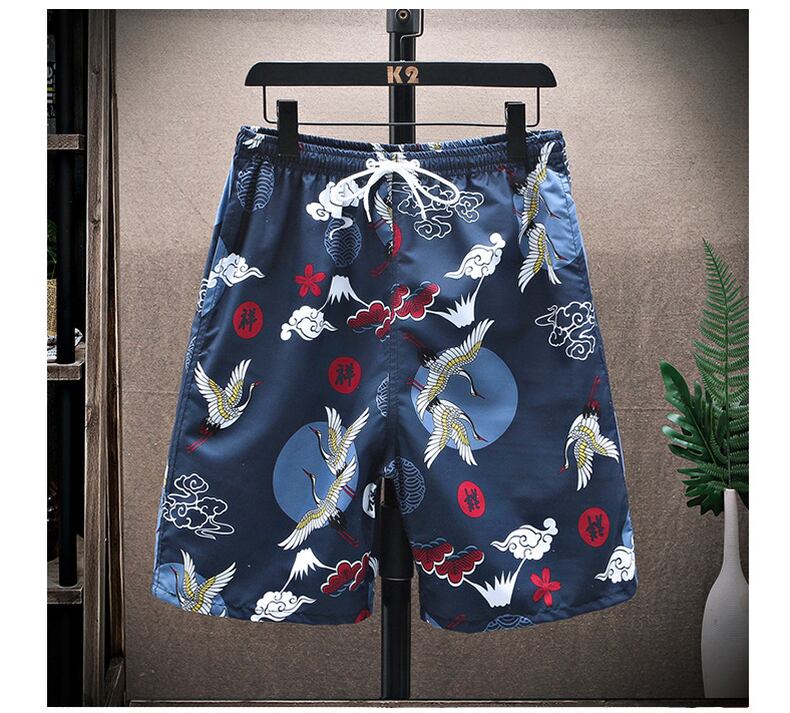 Beach pants men's summer ice silk quick-drying outer wear printed shorts tide brand loose large size five-point pants big pants thin section プリント 大きめサイズ サマー 夏物 ビーチ ショーツ ブルマー シルク doushi77370431016