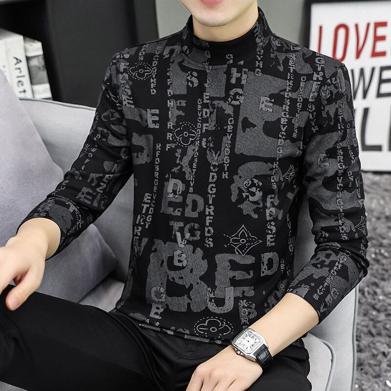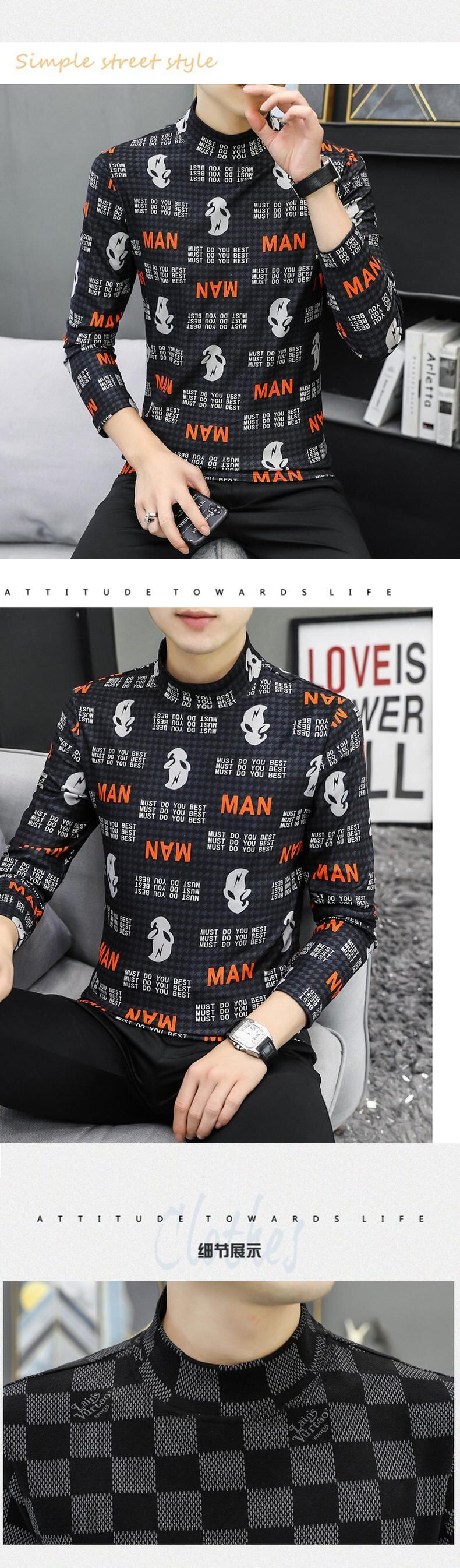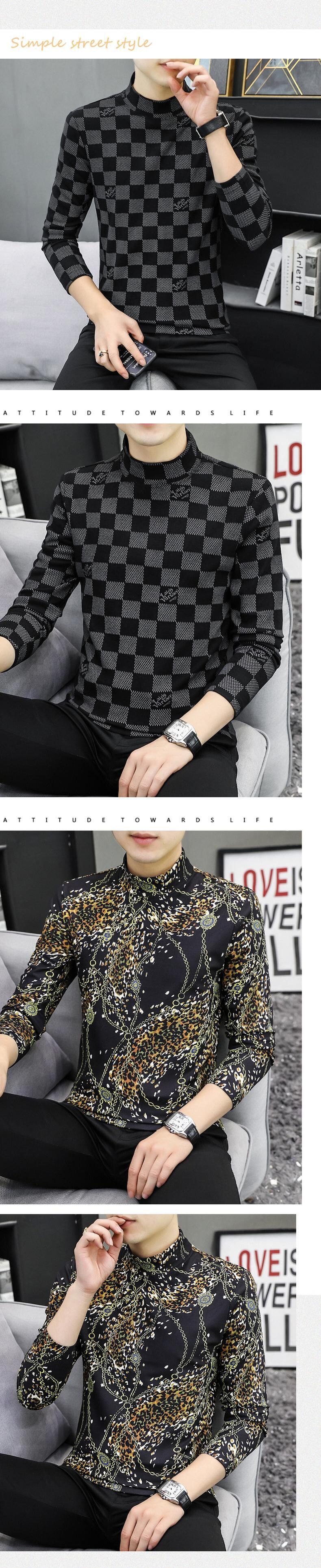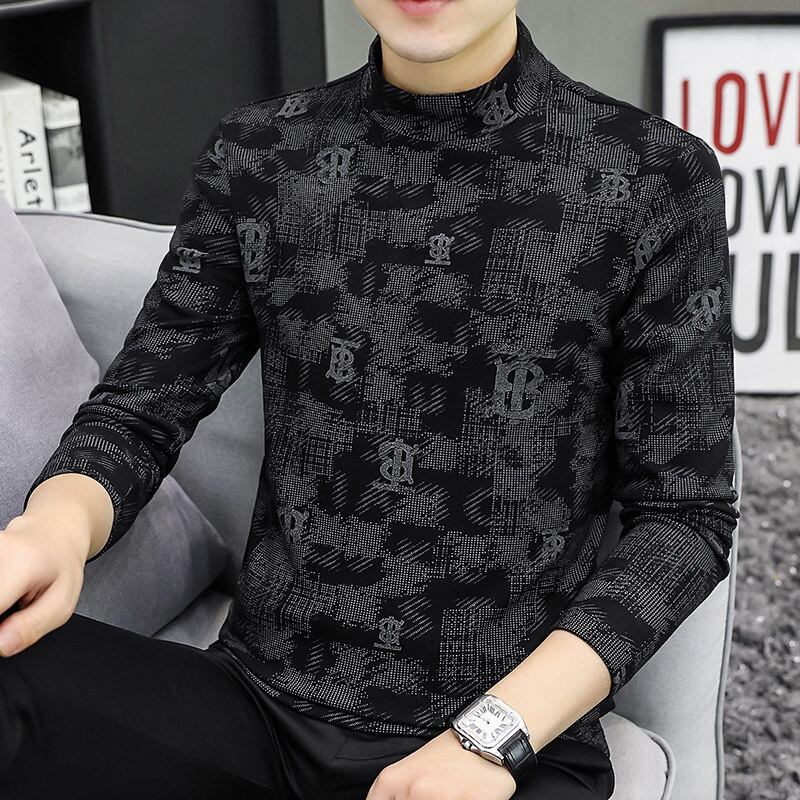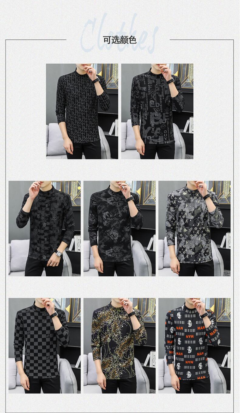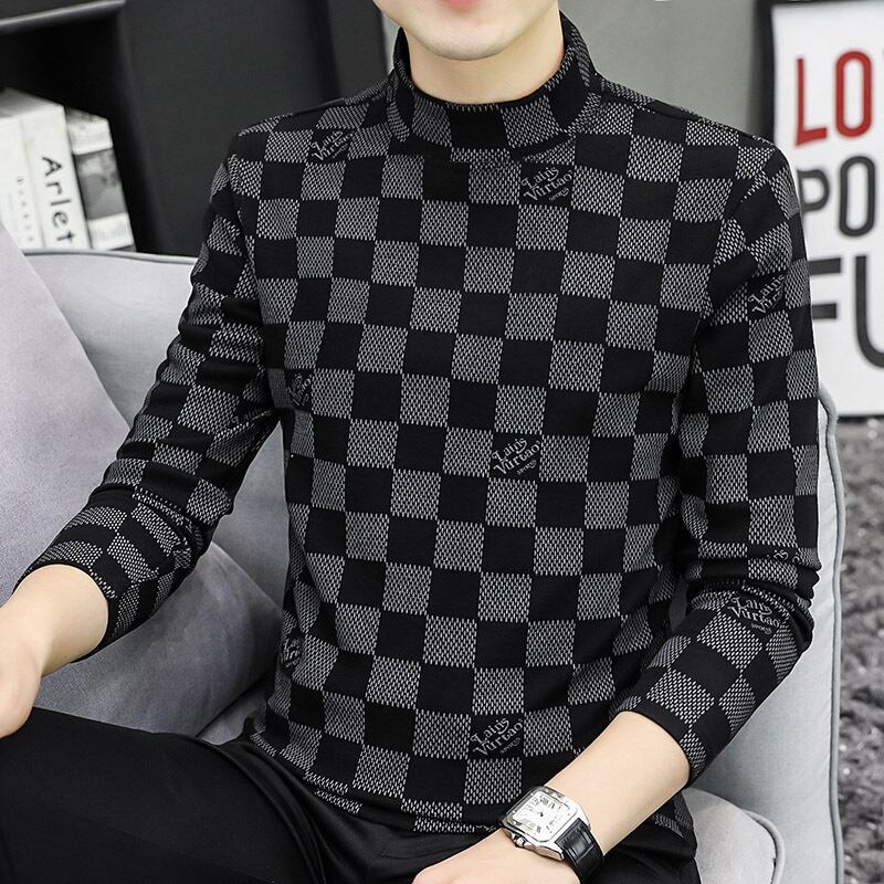 Half-high collar long-sleeved t-shirt men's autumn and winter double-sided brushed velvet plaid with thickened warm middle collar bottoming shirt ロング オータム 秋物 ウィンター 冬物 Tシャツ doushi13621042306