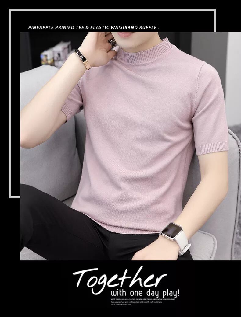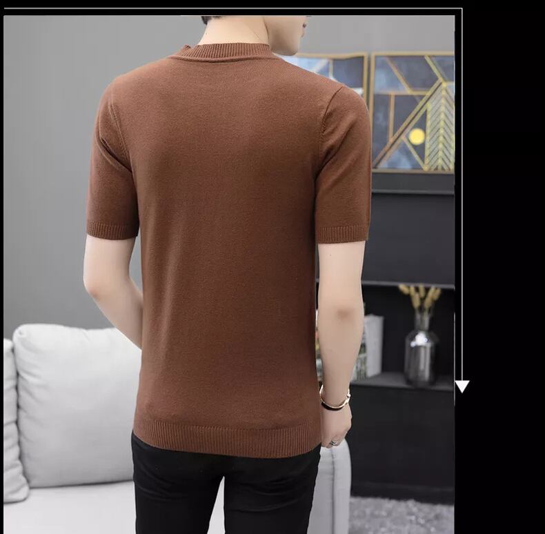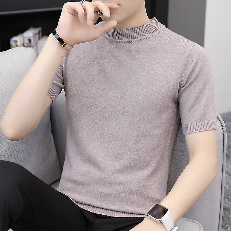 Spring and Autumn Short Sleeve T-Shirt Sweater Men's Round Neck Half Sleeve Knit Solid Color Slim Sweater Knit Sweater Summer Mid-neck Tide ショート 半袖 ハーフスリーブ スプリング 春物 サマー 夏物 オータム 秋物 Oネック スリム Tシャツ ソリッドカラー doushi46468668529