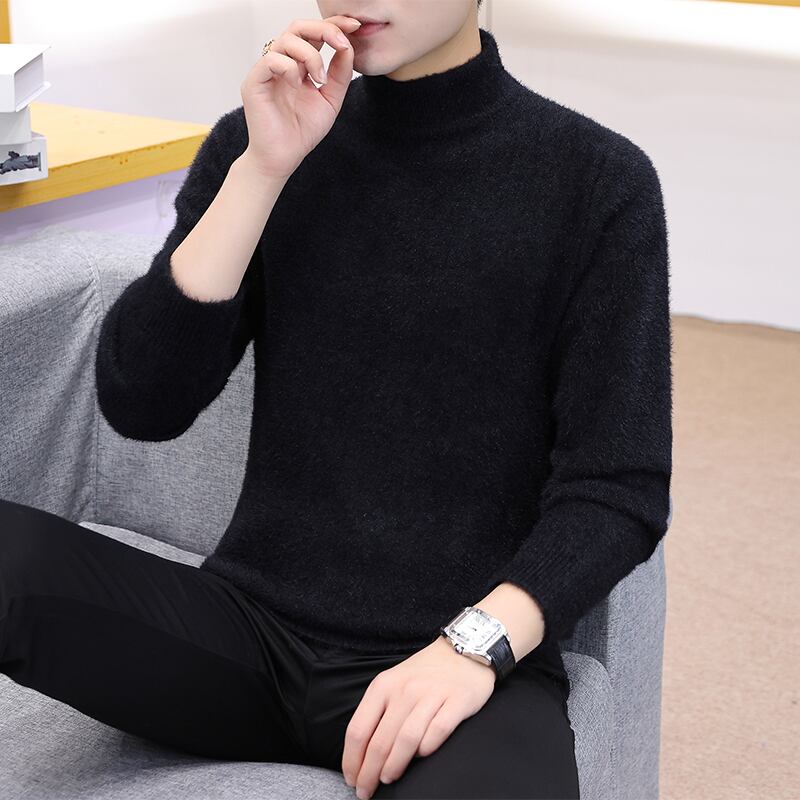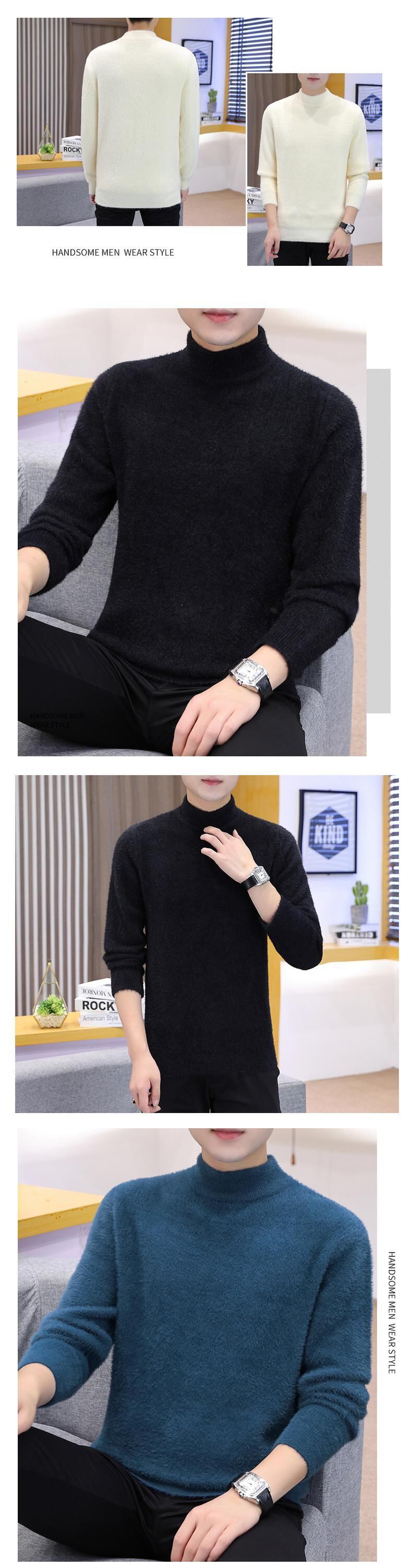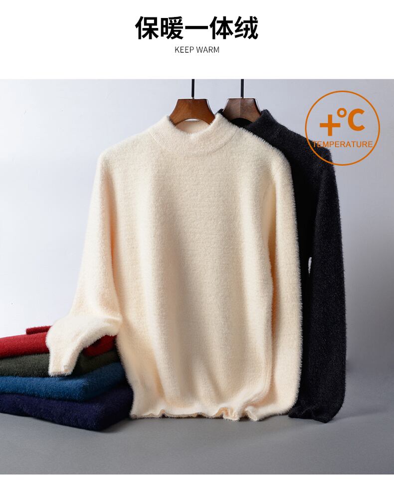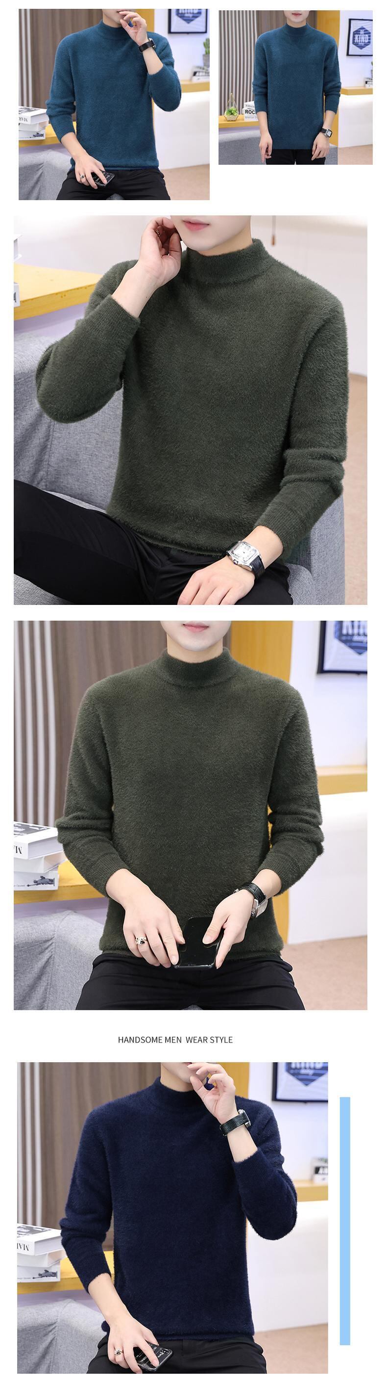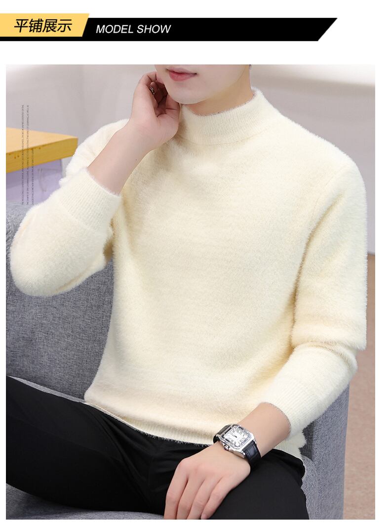 Autumn and winter mink fleece sweater men's half turtleneck plus velvet thickened knitted bottoming shirt trendy autumn line clothes オータム 秋物 ウィンター 冬物 doushi31115442459