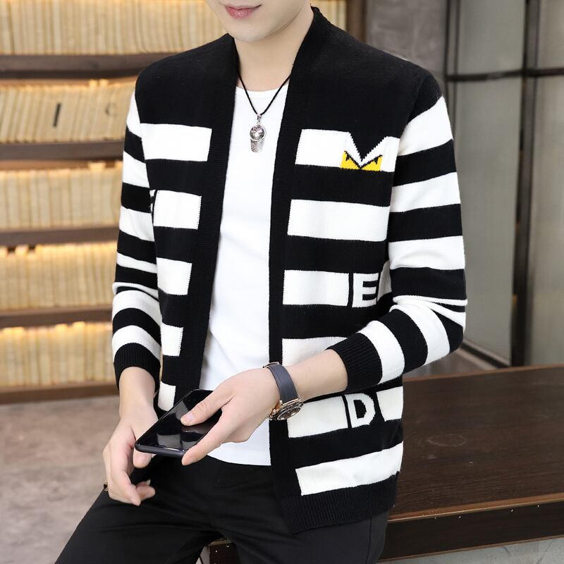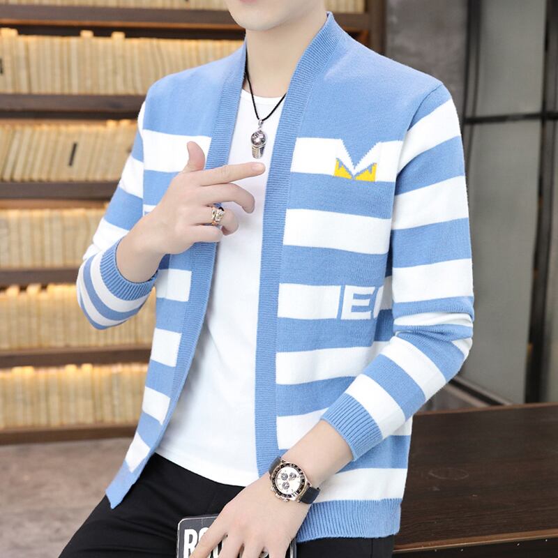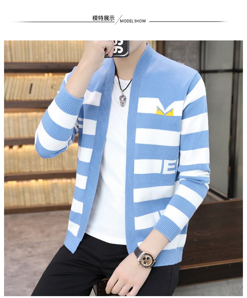 2022 Spring and Autumn Men's Striped Cardigan Sweater Loose Sweater Teen Trend Knitted Jacket カーディガン スプリング 春物 オータム 秋物 ストライプ doushi67321484894
