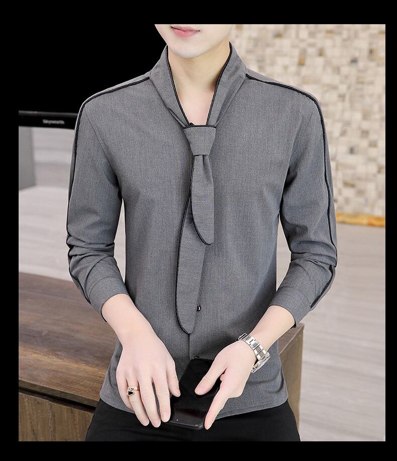 Teenage men's long-sleeved shirts men's version of the trendy ruffian shirts slim hair stylist spring and summer thin inch shirts ロング シャツ スプリング 春物 サマー 夏物 スリム doushi46136599765