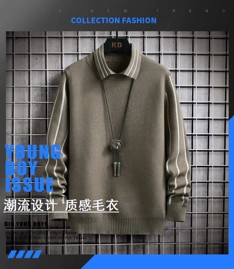 Spring, autumn and winter vacation two sweaters men's trend shirt collar handsome knitted bottoming shirt autumn wear collar top clothes スプリング 春物 オータム 秋物 ウィンター 冬物 doushi38301848717