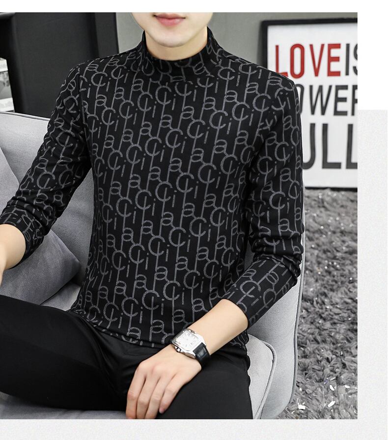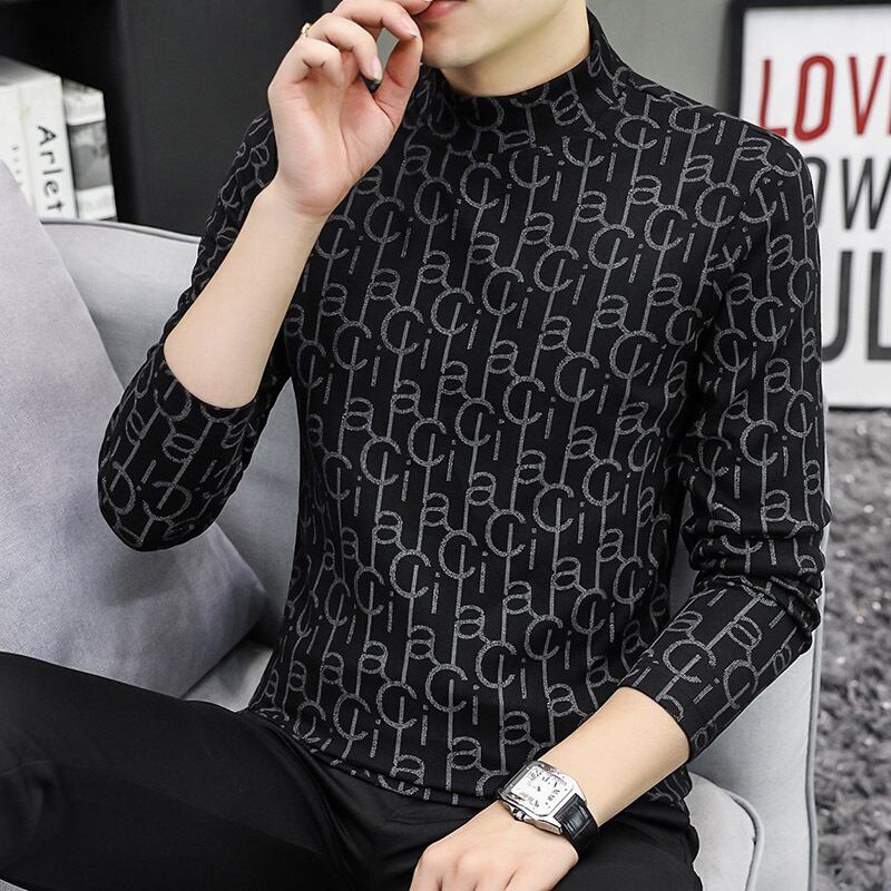 Half turtleneck t-shirt men's long-sleeved small plaid autumn and winter bottoming shirt men's autumn clothes with trendy slim fit version ロング オータム 秋物 ウィンター 冬物 スリム Tシャツ doushi64151811685