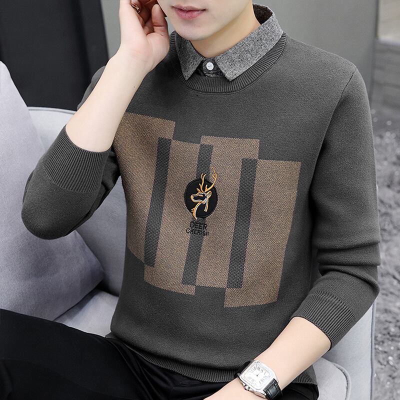 Autumn and winter sweater men's fake two pieces plus velvet thick warm clothes trend line clothes casual jacket loose top men's clothing カジュアル オータム 秋物 ウィンター 冬物 doushi69430993675