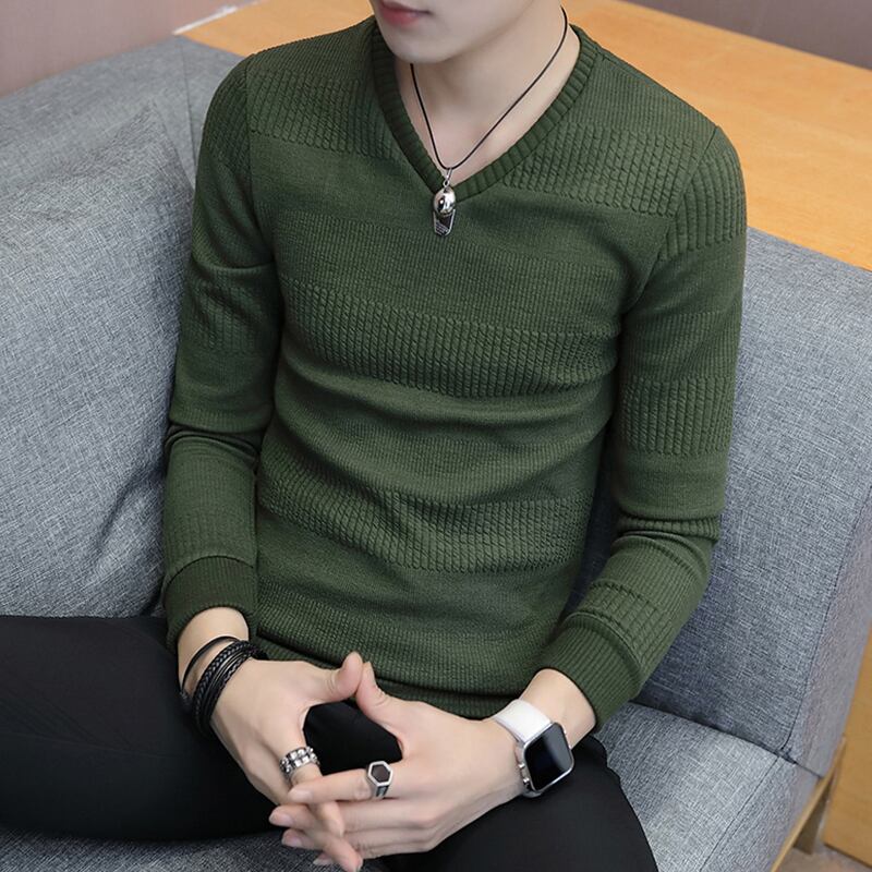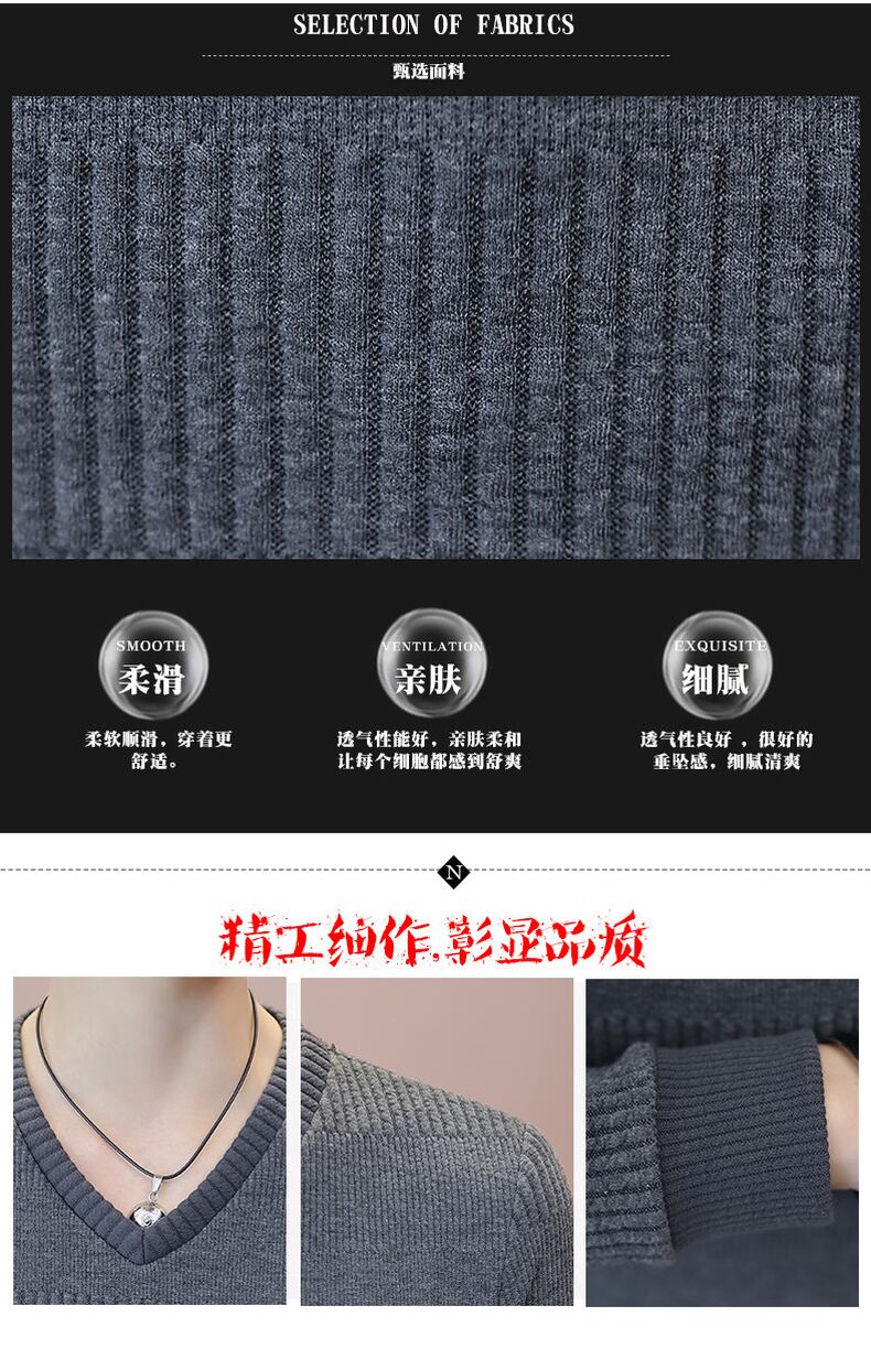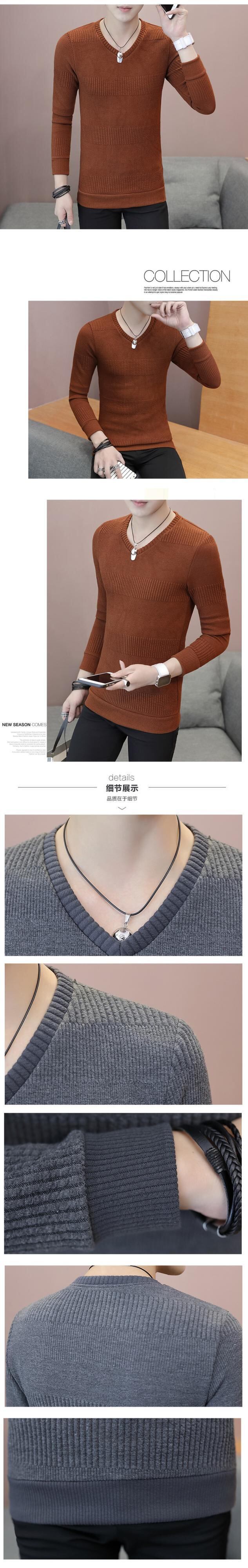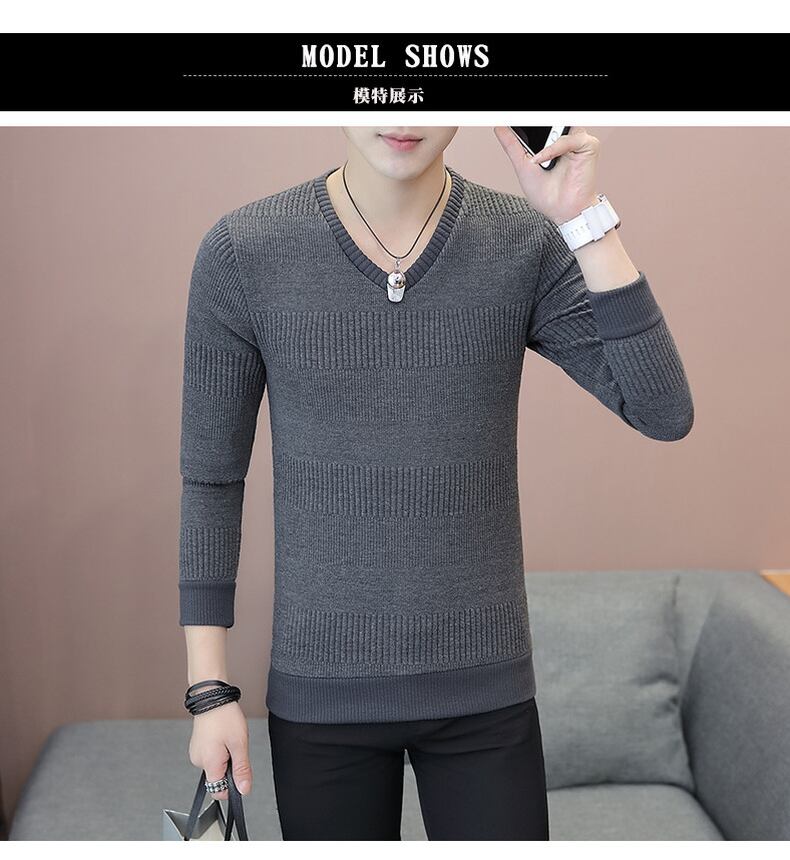 Spring and Autumn V-neck sweater men's all-match sweater top version solid color plus velvet thickened long-sleeved bottoming shirt men's ロング スプリング 春物 オータム 秋物 Vネック ソリッドカラー doushi70418002413