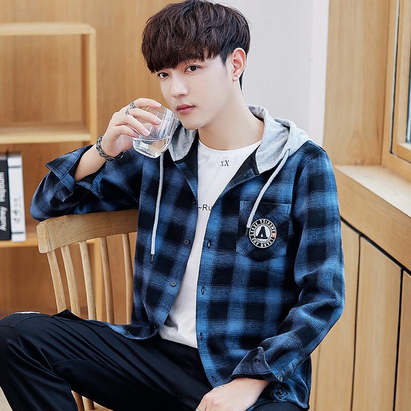 Spring and autumn new plaid shirt men's loose long-sleeved shirt version of the trend spring handsome casual all-match coat ロング カジュアル スプリング 春物 オータム 秋物 doushi16598122072